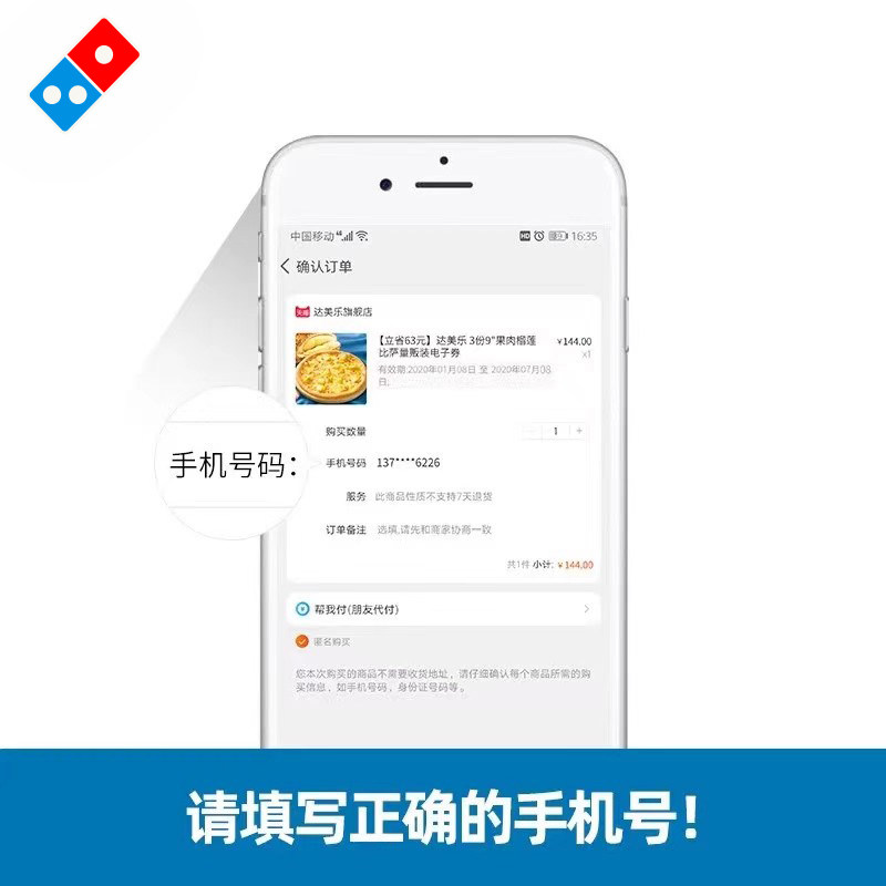 达美乐 苏丹王榴莲多多比萨9''卷边饼底 电子折扣券可外送