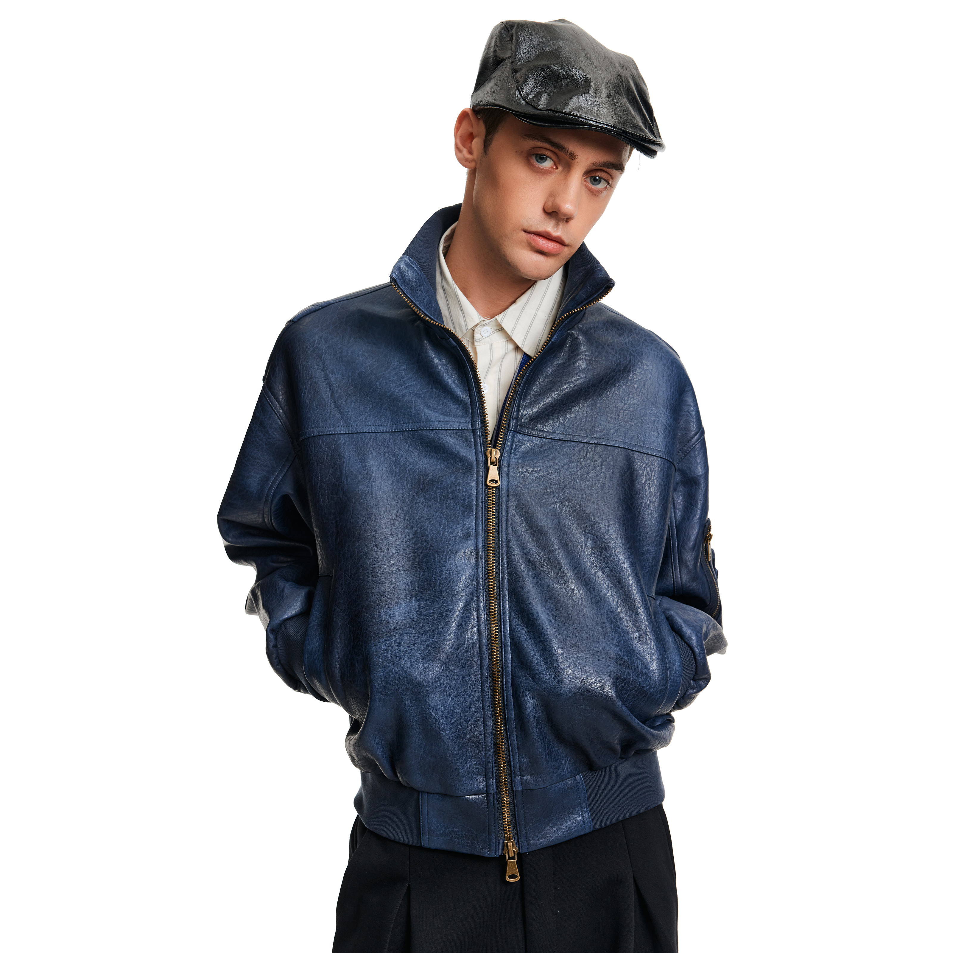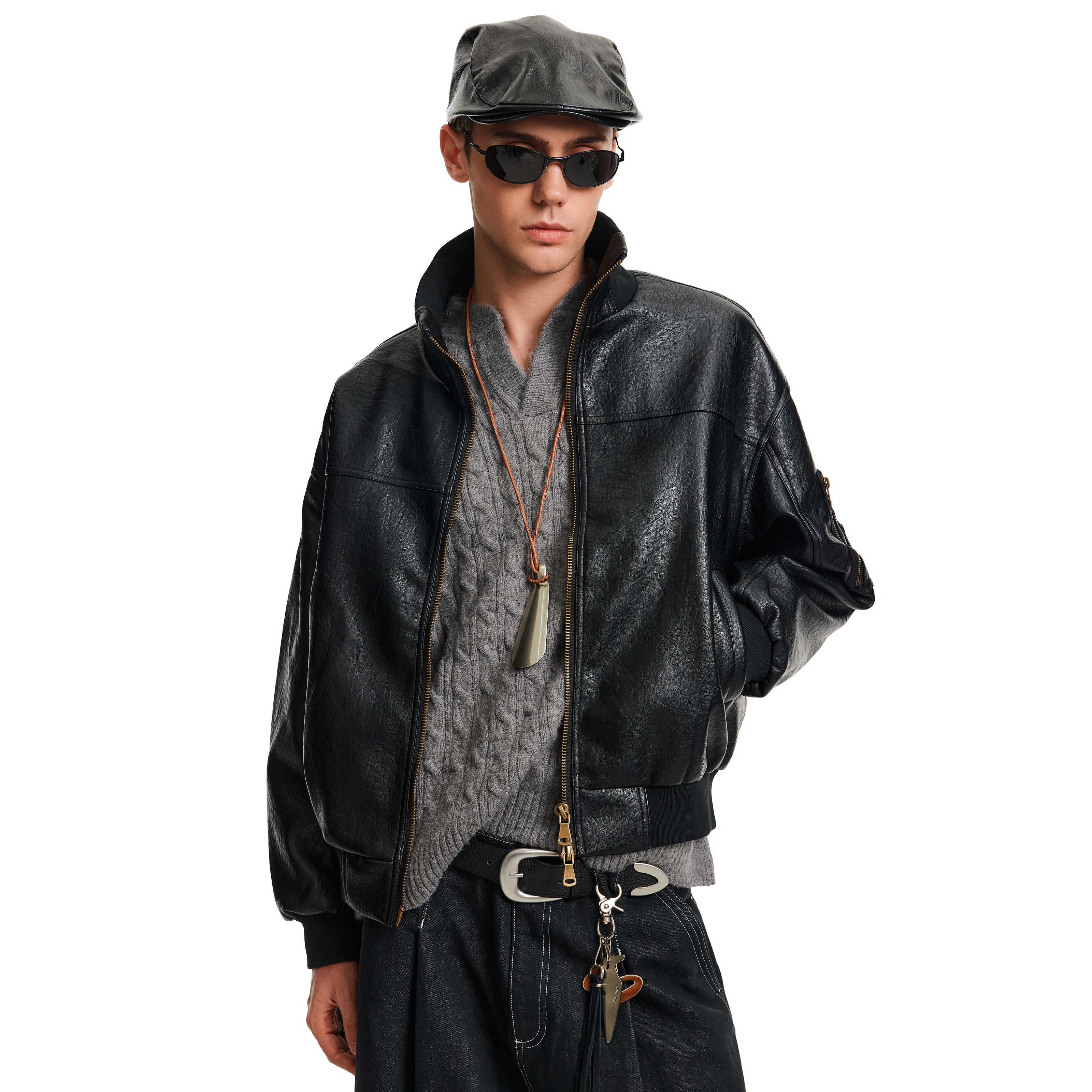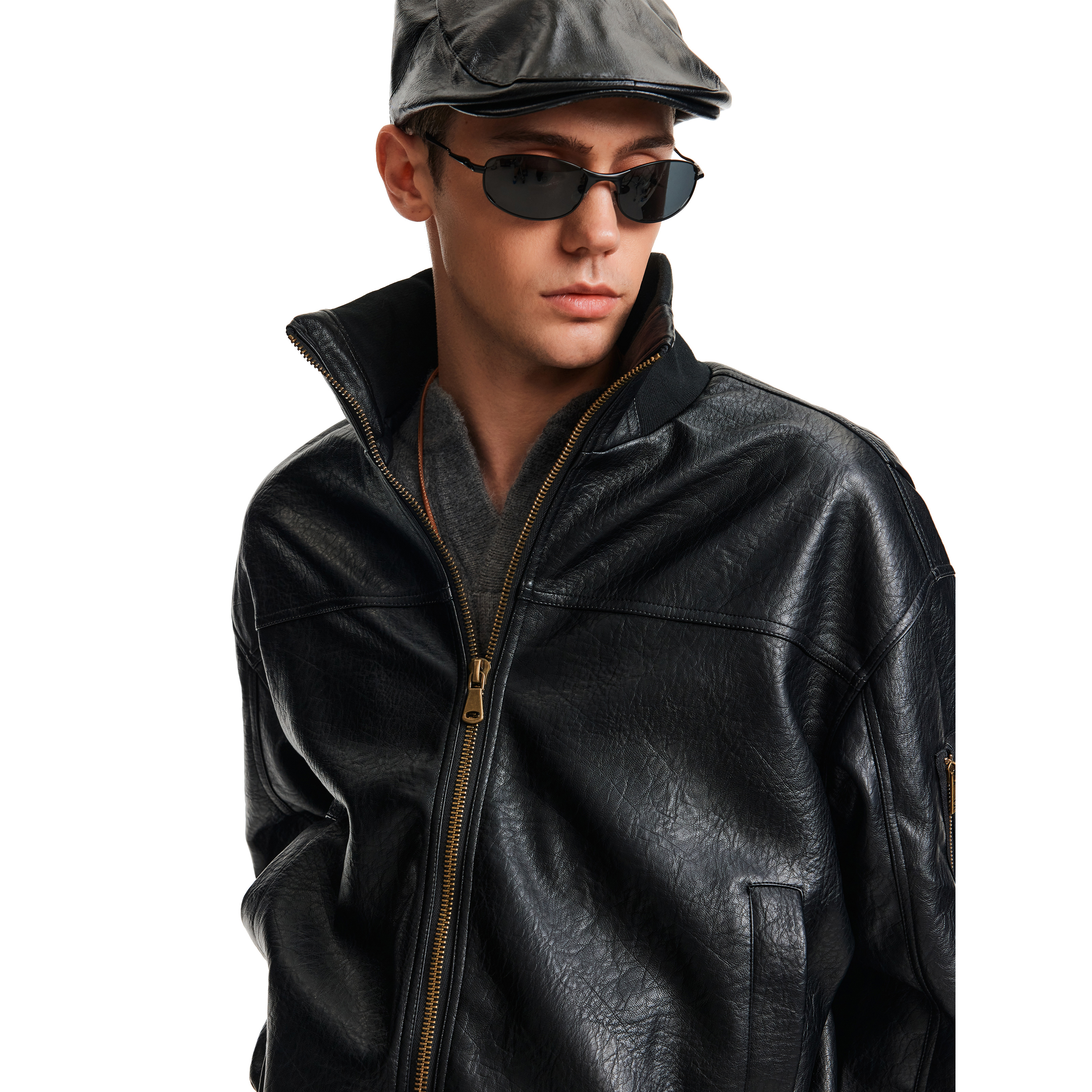 MADWITCH秋冬美式做旧裂纹皮衣夹克男女复古痞帅高级感飞行员外套