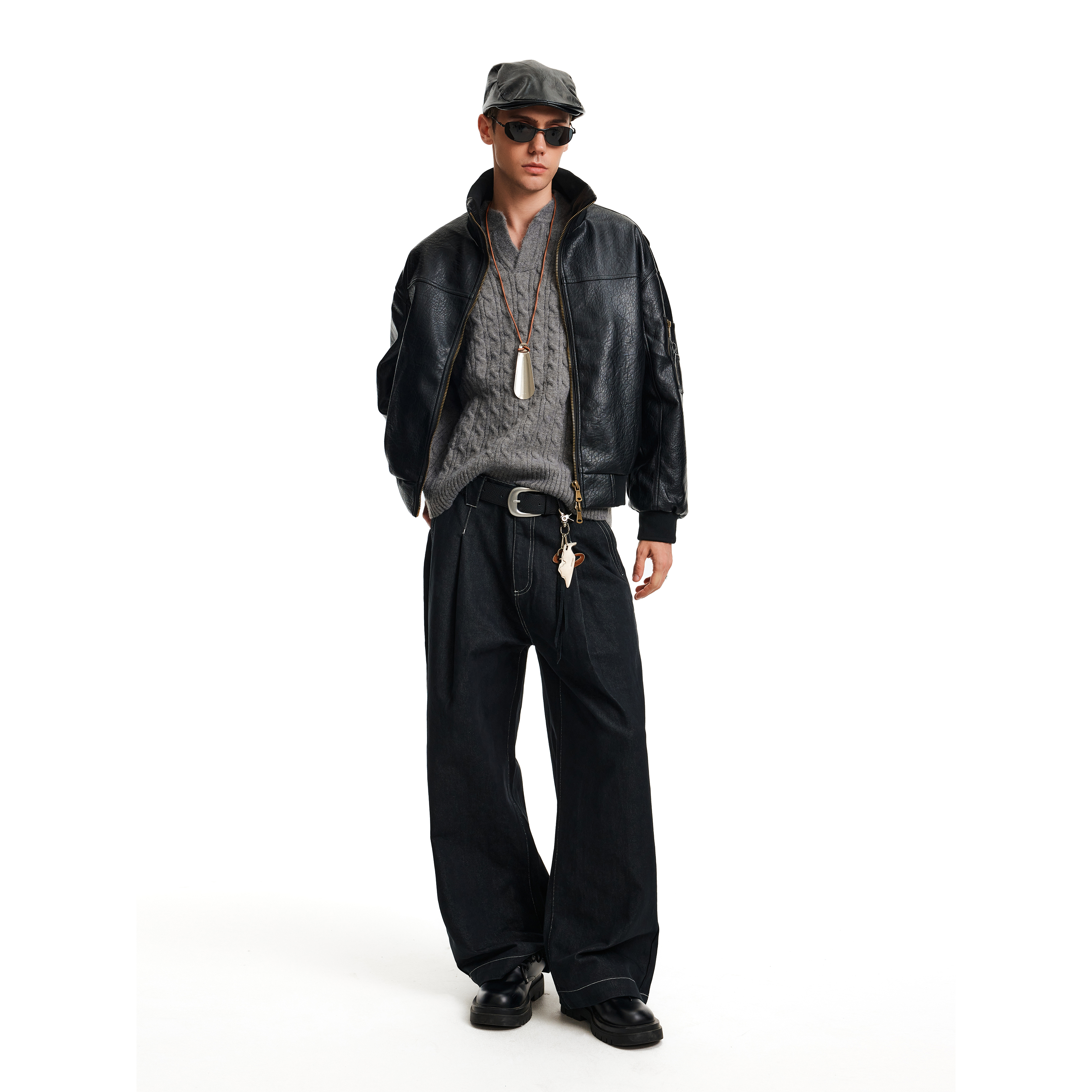 MADWITCH美式做旧裂纹皮衣夹克潮