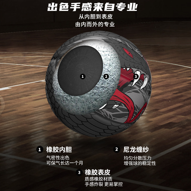 维动蛇年限定黑曼巴蛇篮球7号成人比赛训练儿童橡胶蓝球户外耐磨