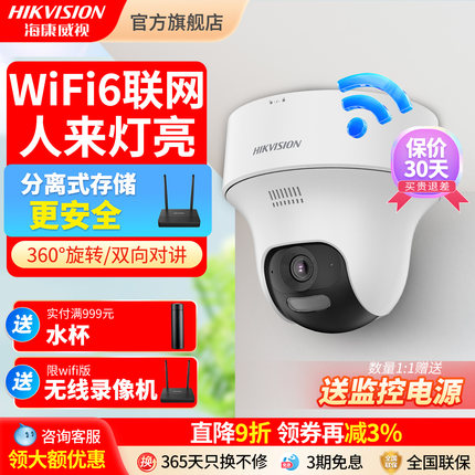 海康威视wifi400万摄影头智能全彩夜视无线室内看宠物摄像头超市