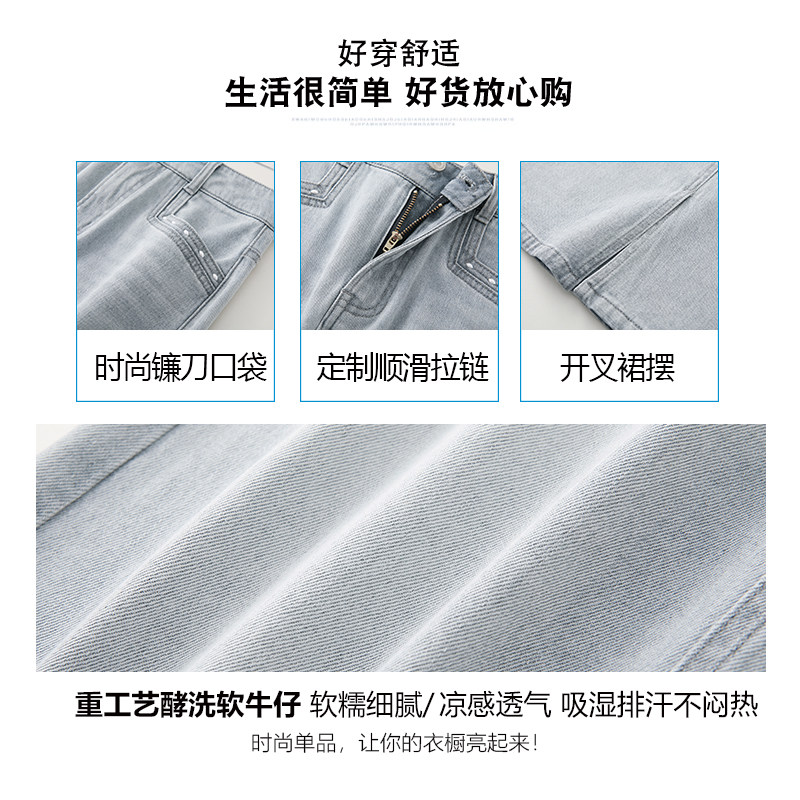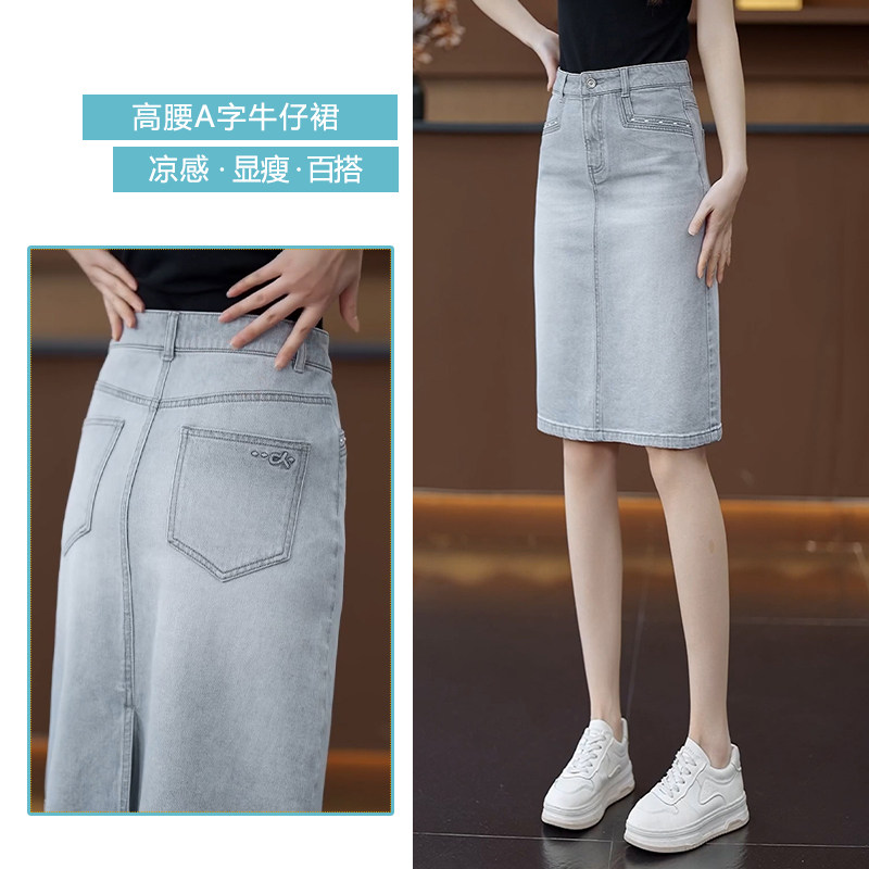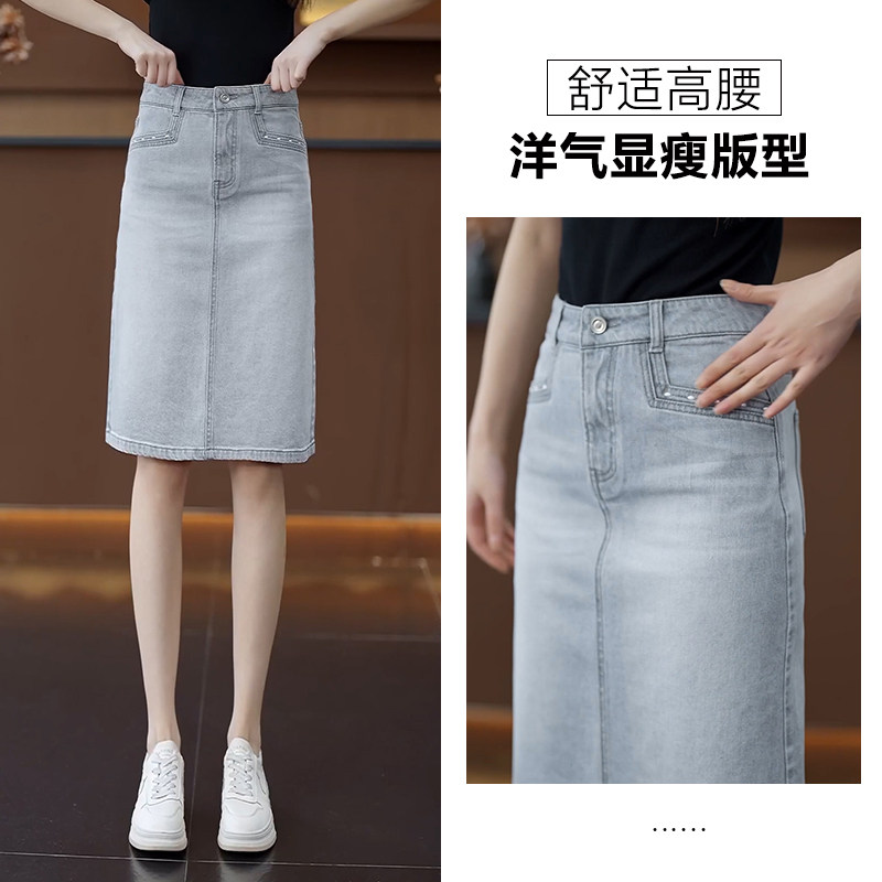 时尚莫兰迪烟灰高腰显瘦牛仔裙女秋冬休闲百搭半身裙后开叉一步裙