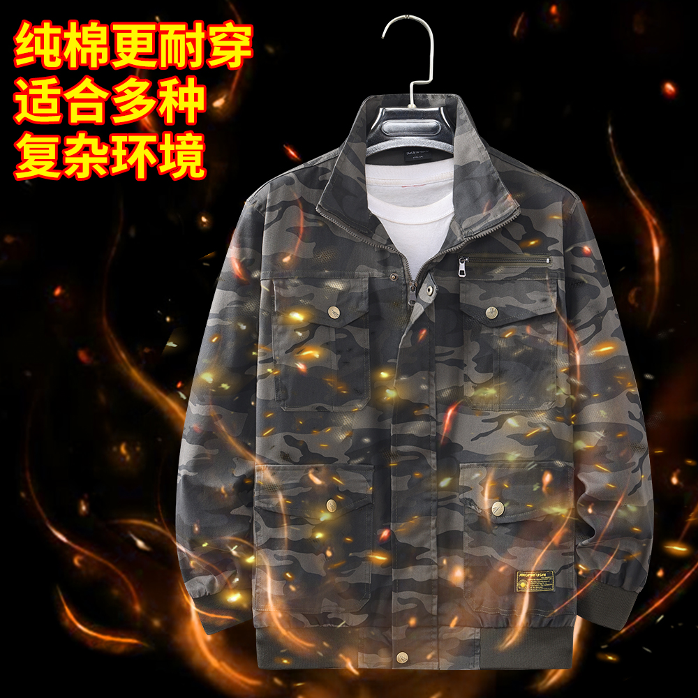 工作服男装上衣迷彩服劳保服男纯棉弹力耐磨防烫电焊汽修男士加厚