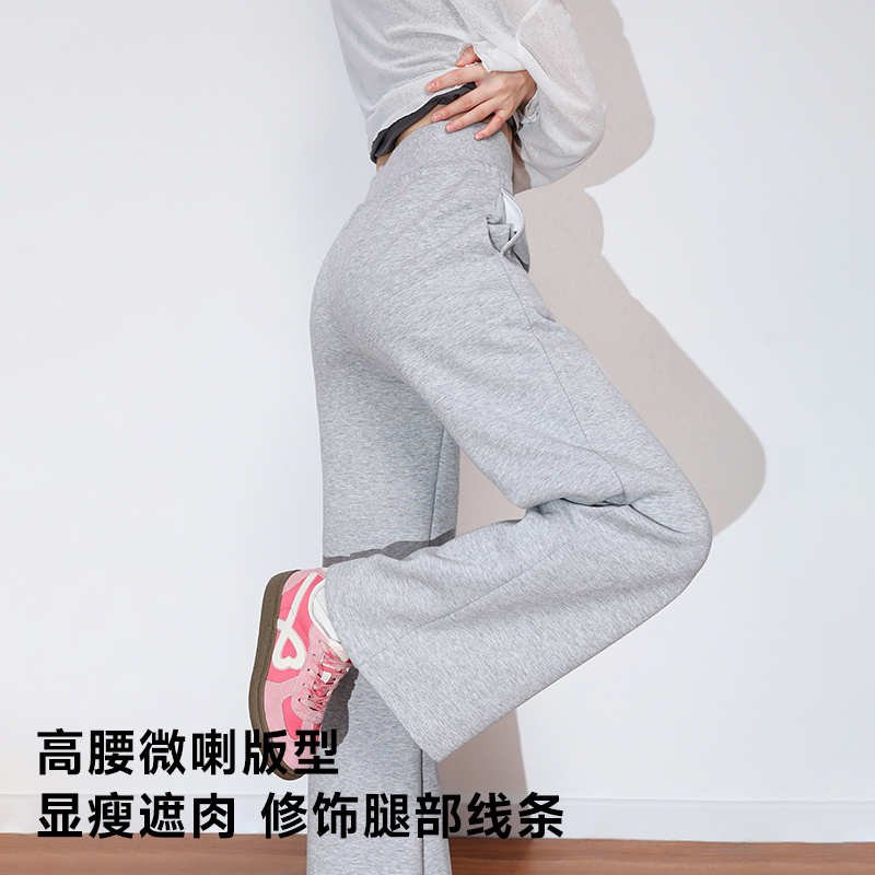 唐狮官方灰色微喇裤女2025新款春季女款高腰直筒修身运动喇叭裤VB