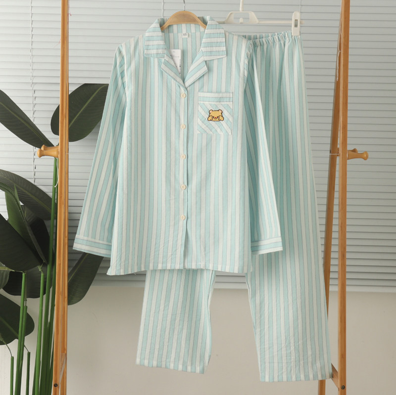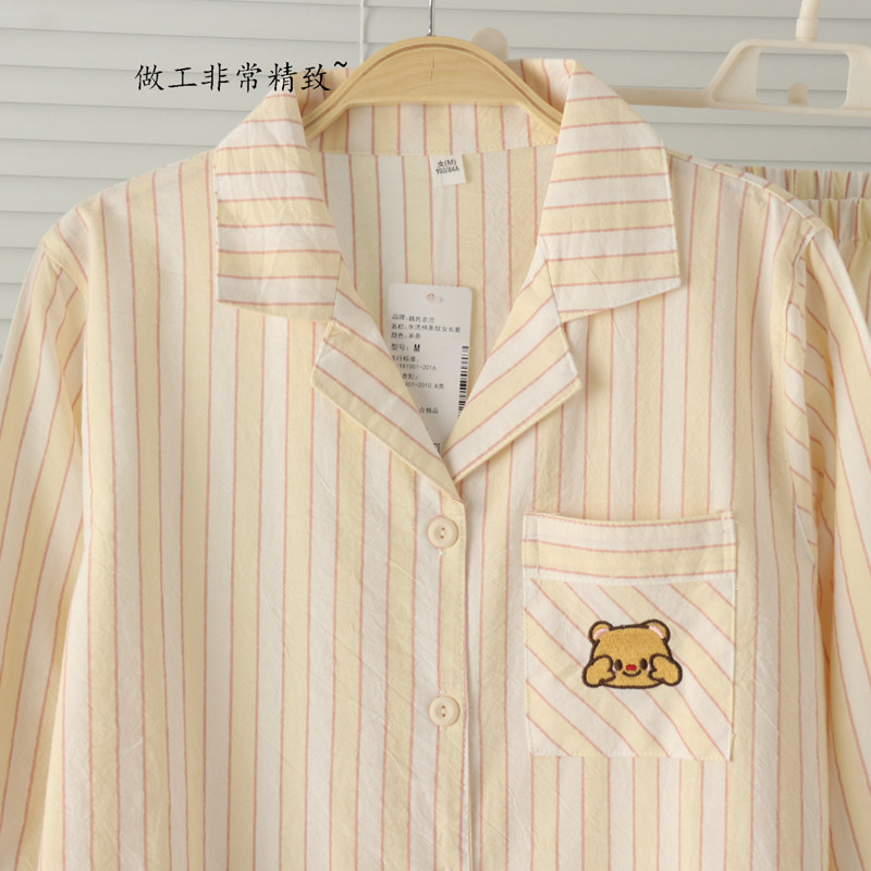 女梭织纯棉薄款水洗棉开身长袖长裤睡衣家居服套装春夏清爽全棉