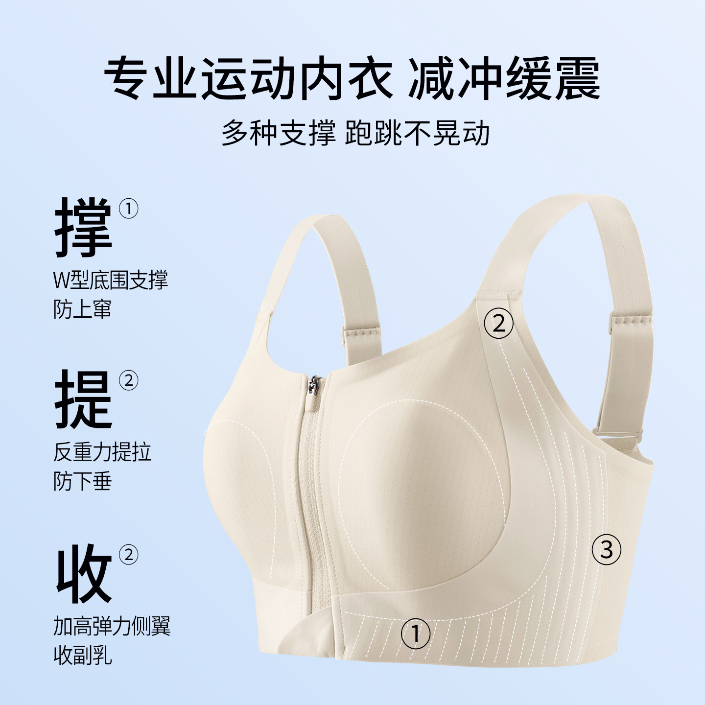 前拉链运动内衣女防震防下垂大胸显小束胸无痕收副乳大码背心文胸
