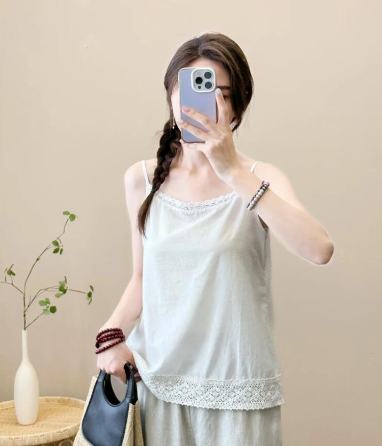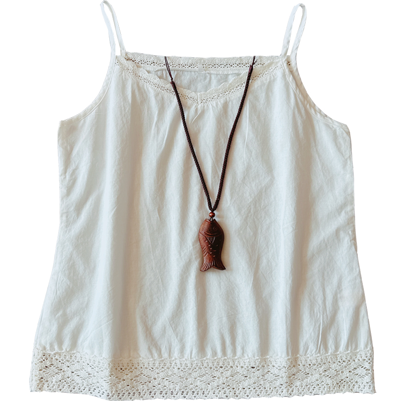 棉麻蕾丝边吊带背心女夏装新民族风文艺复古白色无袖内搭上衣外穿