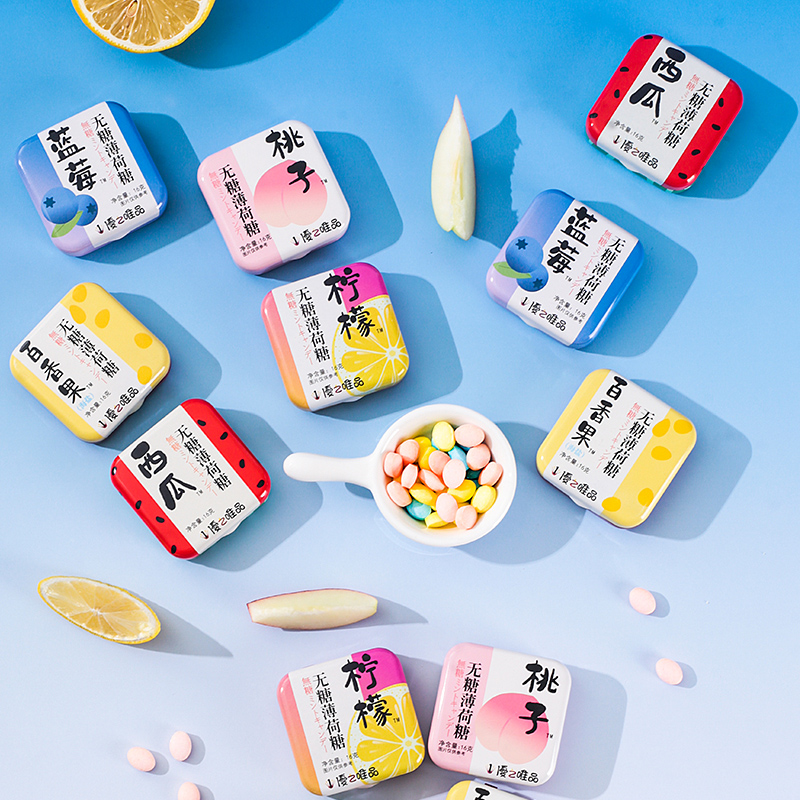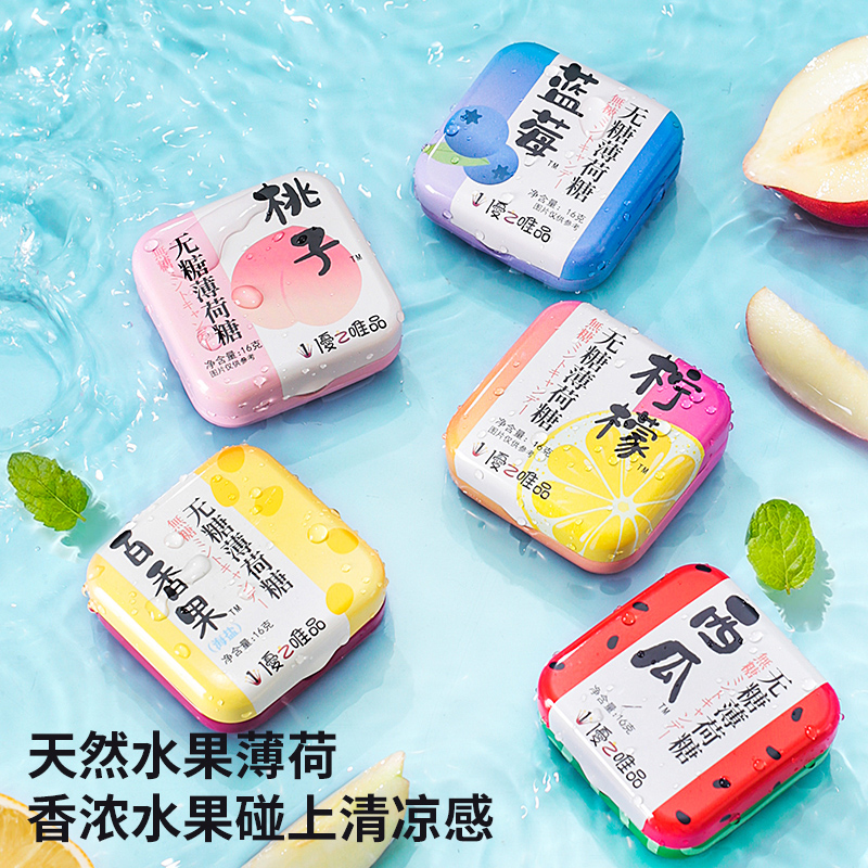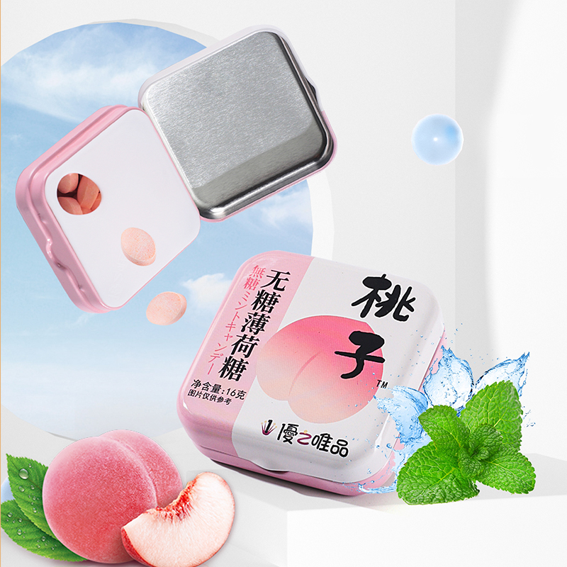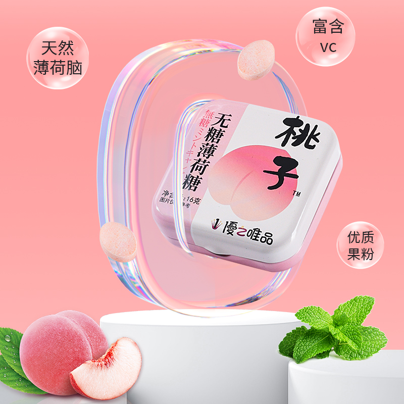 优之唯品维c无糖薄荷糖桃子味清凉清新口气糖果休闲零食糖果16g