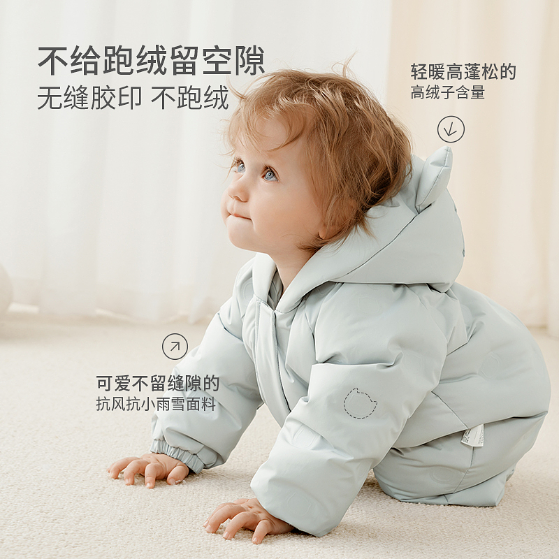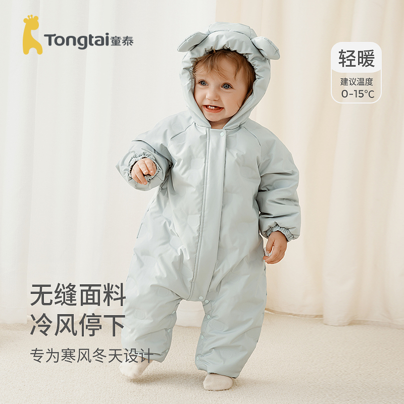 童泰婴儿羽绒连体衣秋冬季宝宝轻薄款连帽鸭绒服儿童外出哈衣爬服