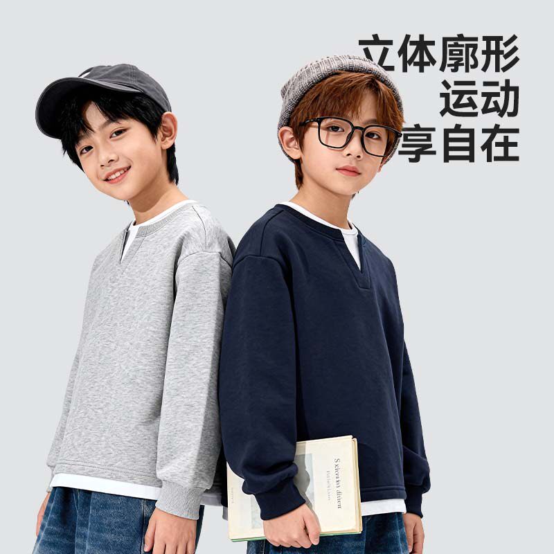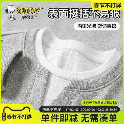 史努比童装男童卫衣春装2026新款灰色打底衫上衣小男孩假两件长袖
