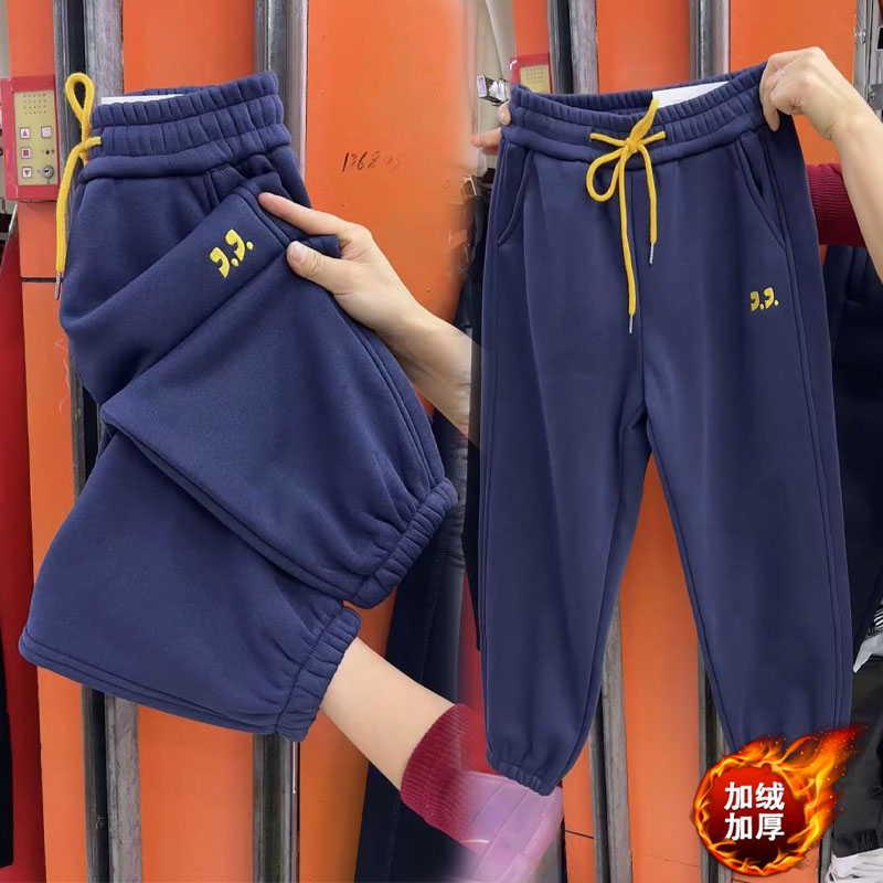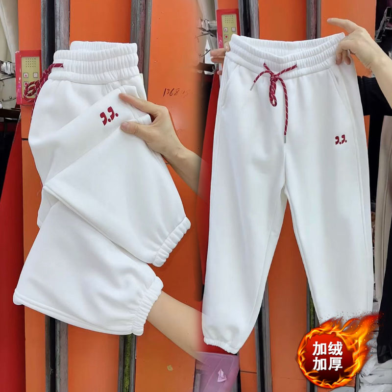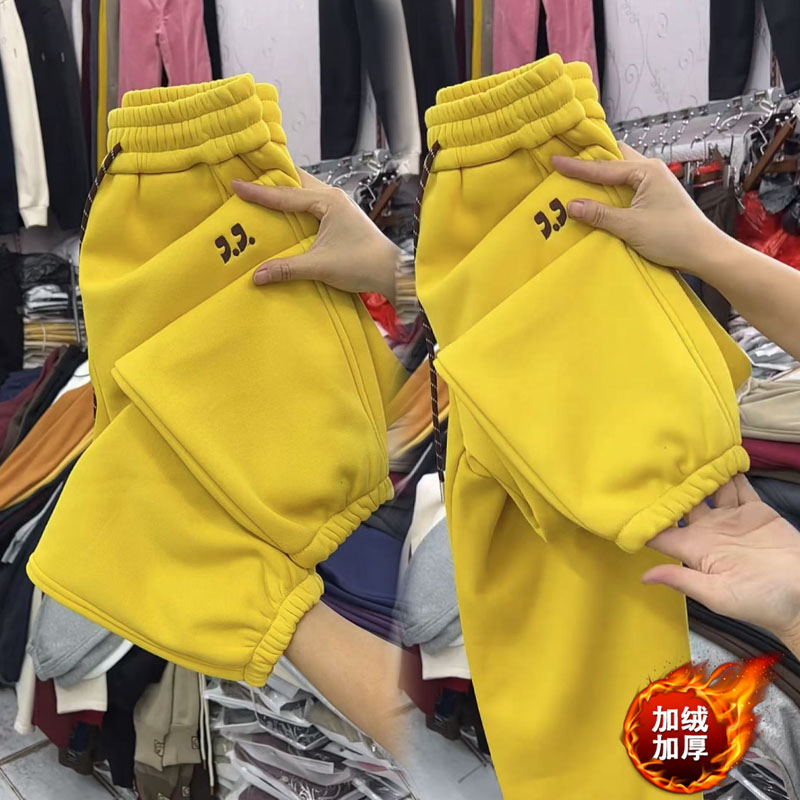 糖果色加绒加厚卫裤女冬季新款百搭纯棉小个子高腰宽松九分哈伦裤