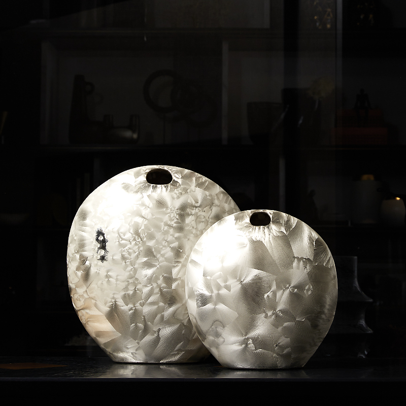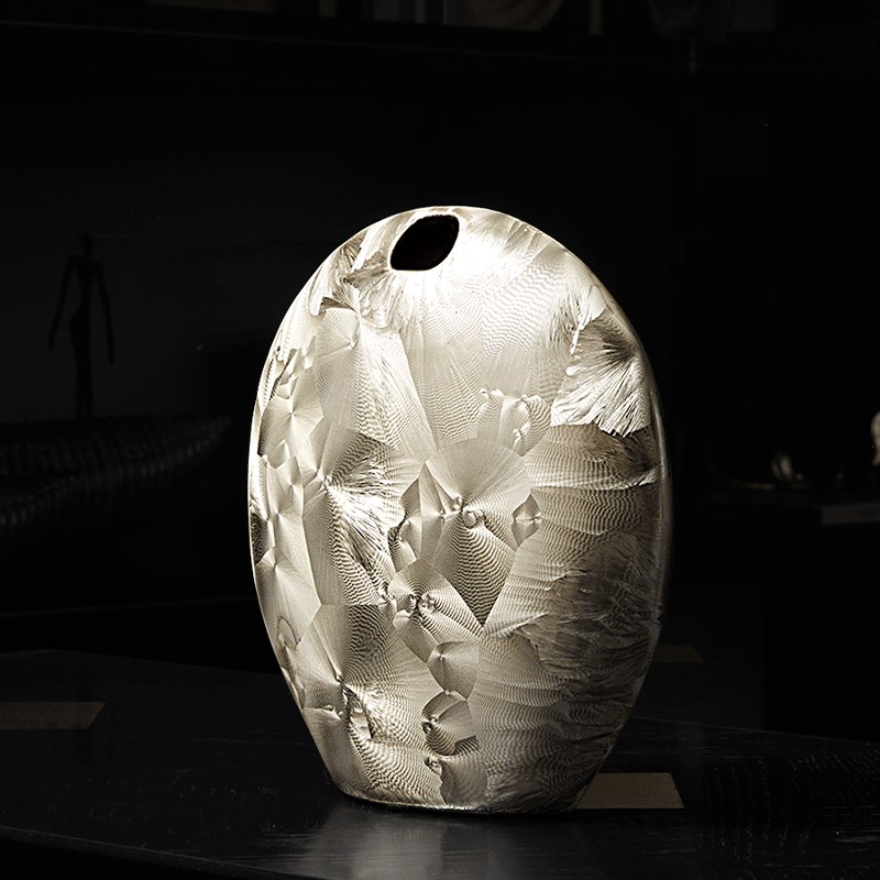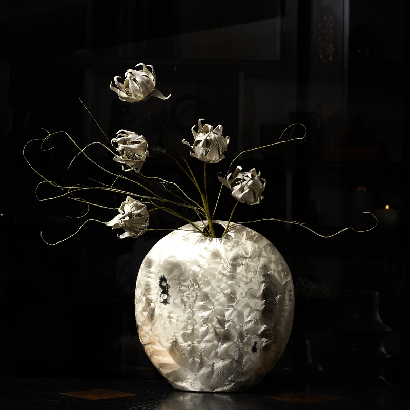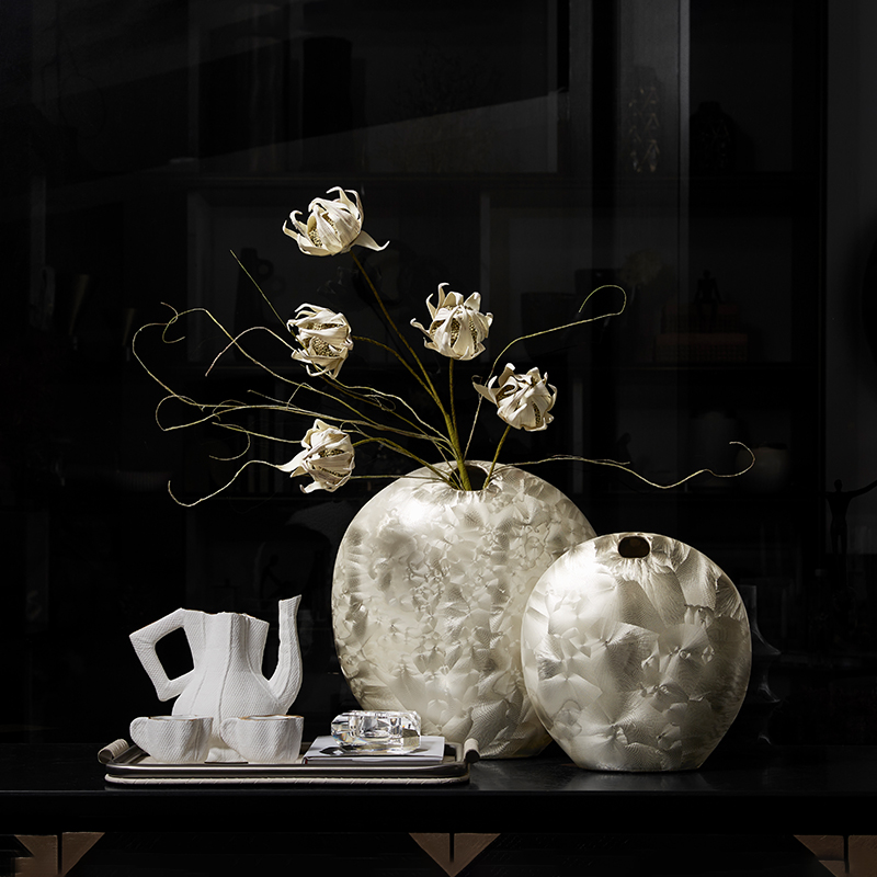 幻彩珠光白色陶瓷花瓶轻奢高x级感客厅插花样板间餐桌茶几摆件组