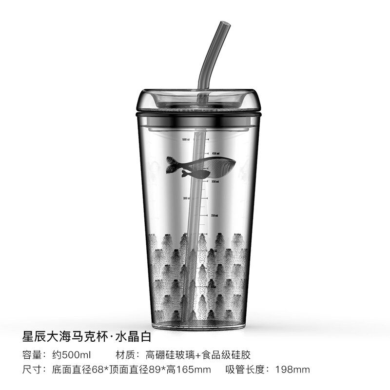 棠诗玻璃杯耐高温吸管杯男女水杯便携牛奶咖啡杯家用刻度杯果汁杯