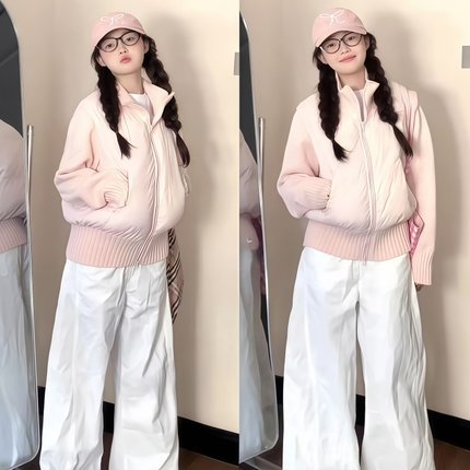 2025冬季新款超好看韩系短款羽绒棉服女小个子拼接棉衣棉袄厚外套