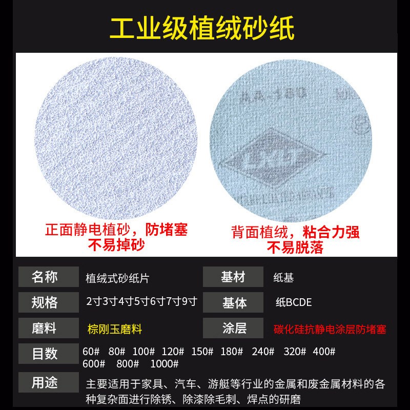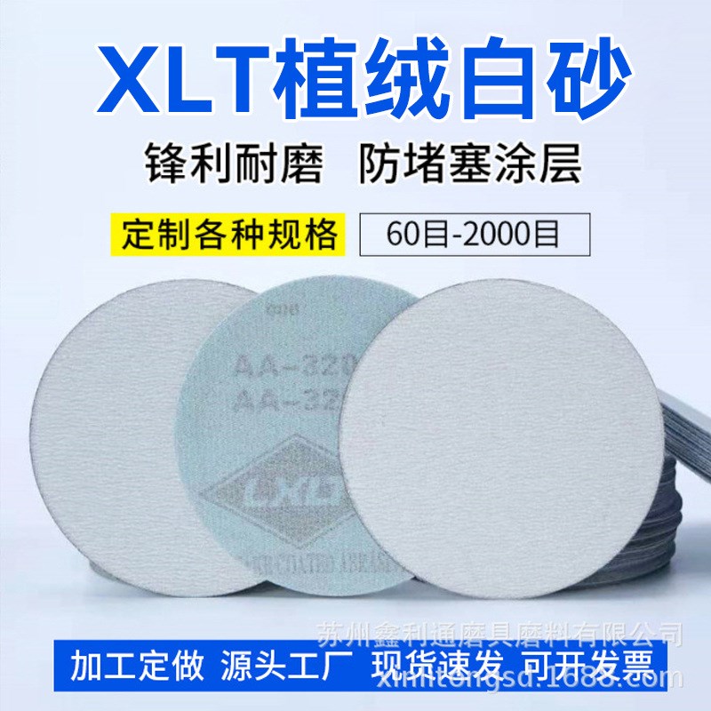 砂纸定做XLT白砂木材金属打磨4寸植绒砂纸5寸抛光圆盘砂纸2000目