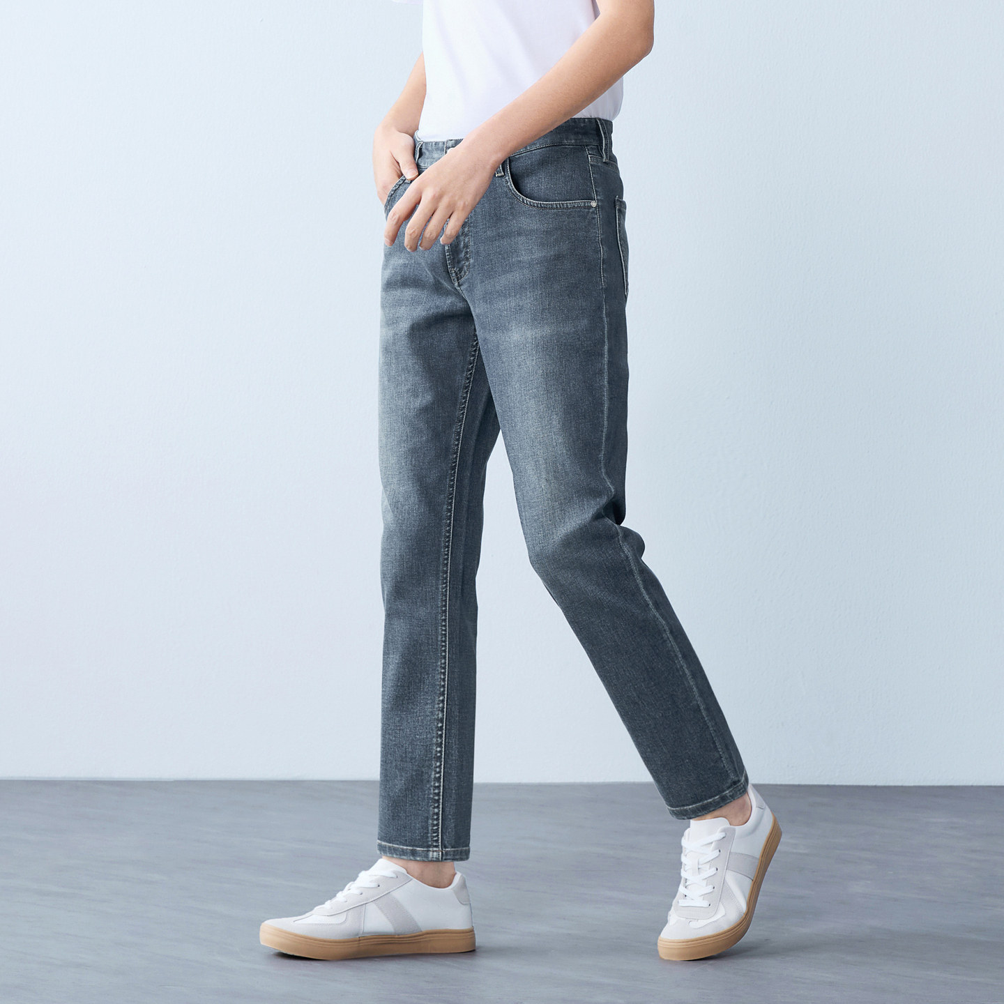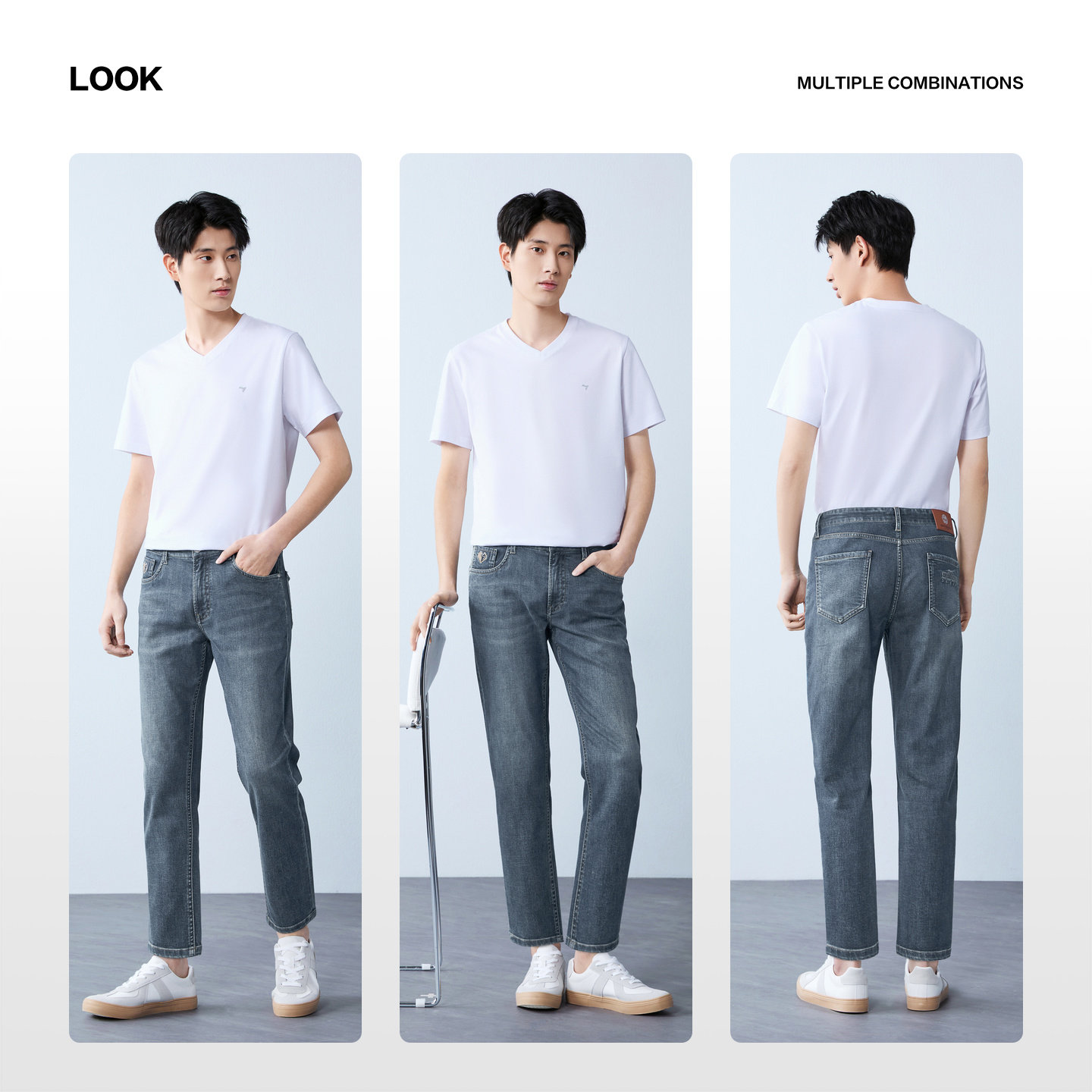 柒牌2025春季新款休闲风男士直筒牛仔裤春季弹力百搭商务长裤蓝色