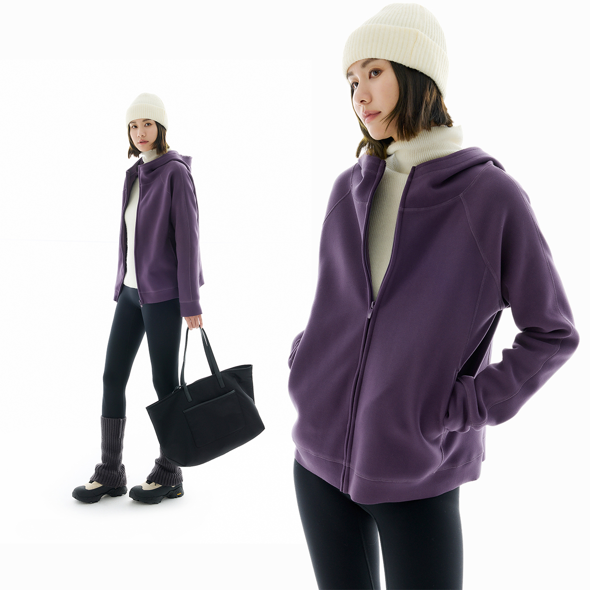 云上生活【酱紫外套】连帽短款拉链开衫复合细密绒秋冬外套上衣女