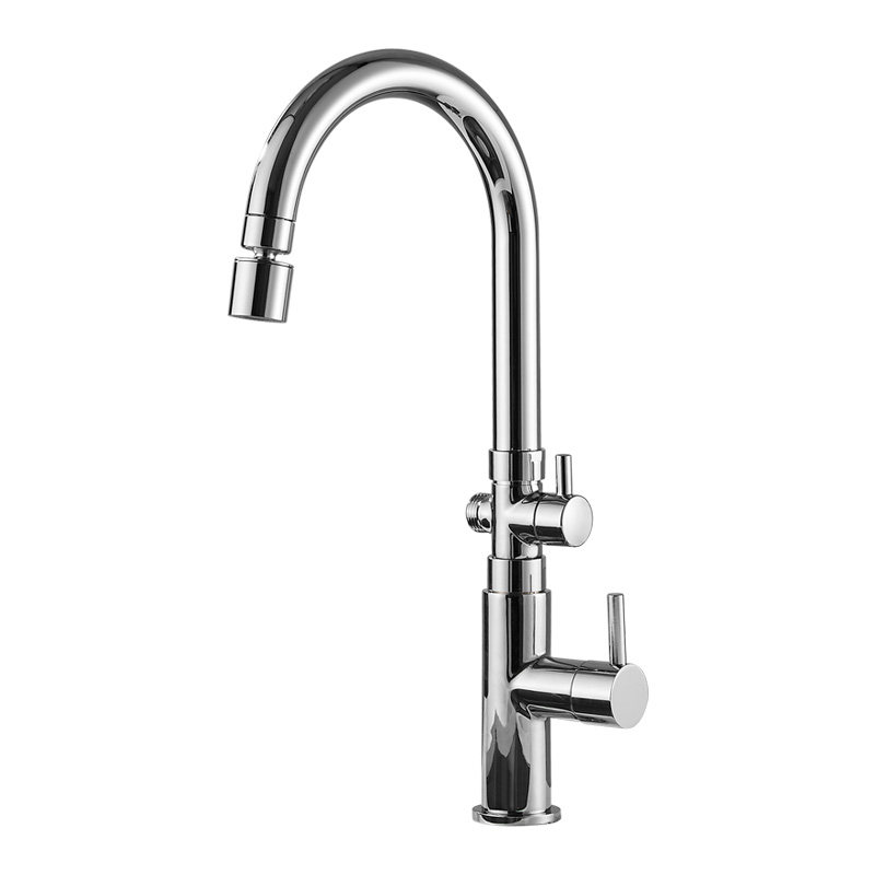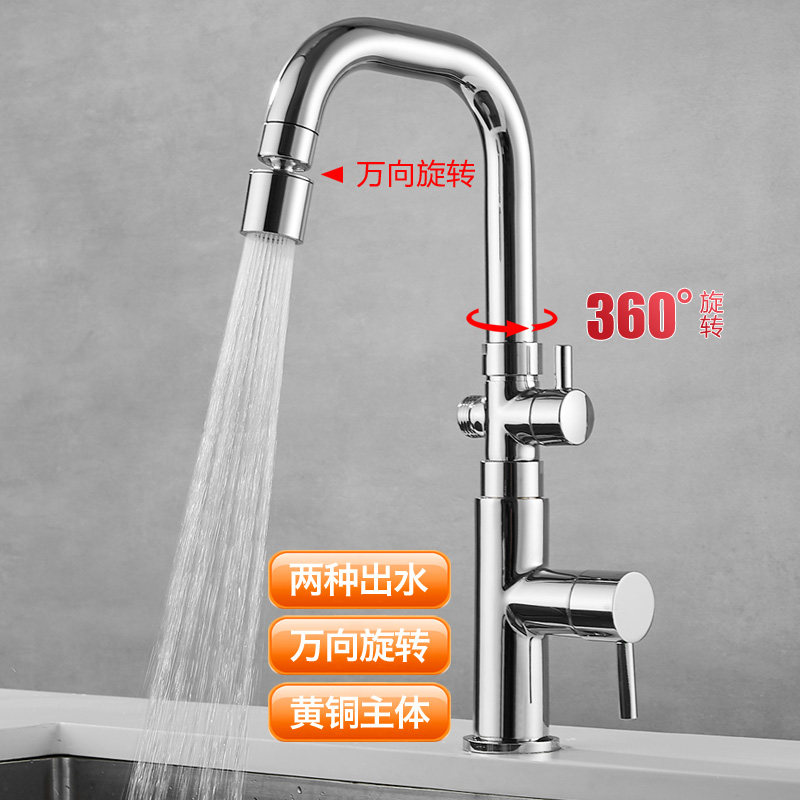 厨房洗菜盆单冷水龙头一进二出接洗碗机洗衣机阳台多功能双用旋转