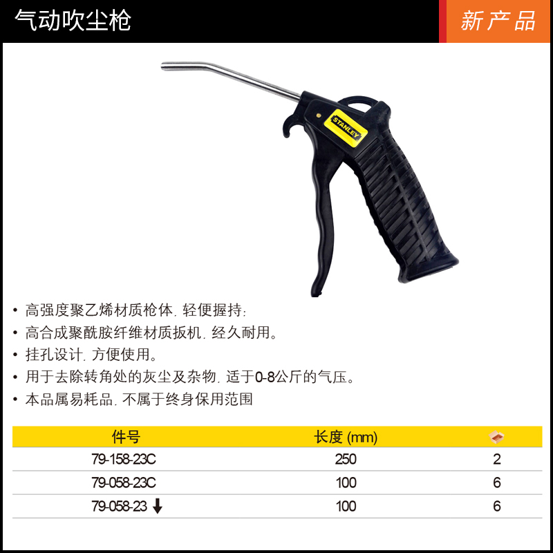 史丹利气动吹尘枪吹风枪除尘枪吹灰吹气枪清洗汽修加长除尘枪