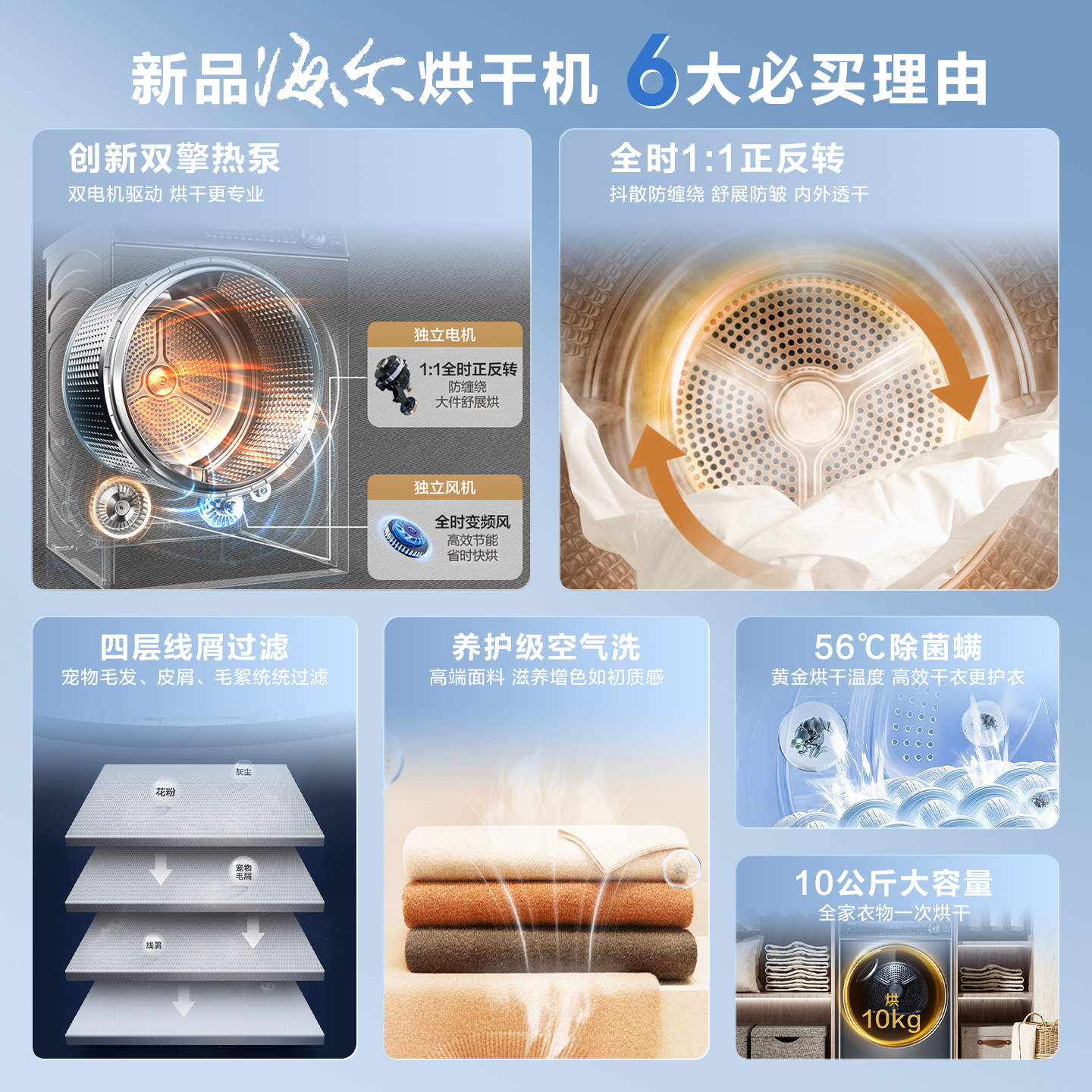 [云溪4.0]海尔热泵烘干机77E家用双擎变频10KG干衣机白色旗舰579