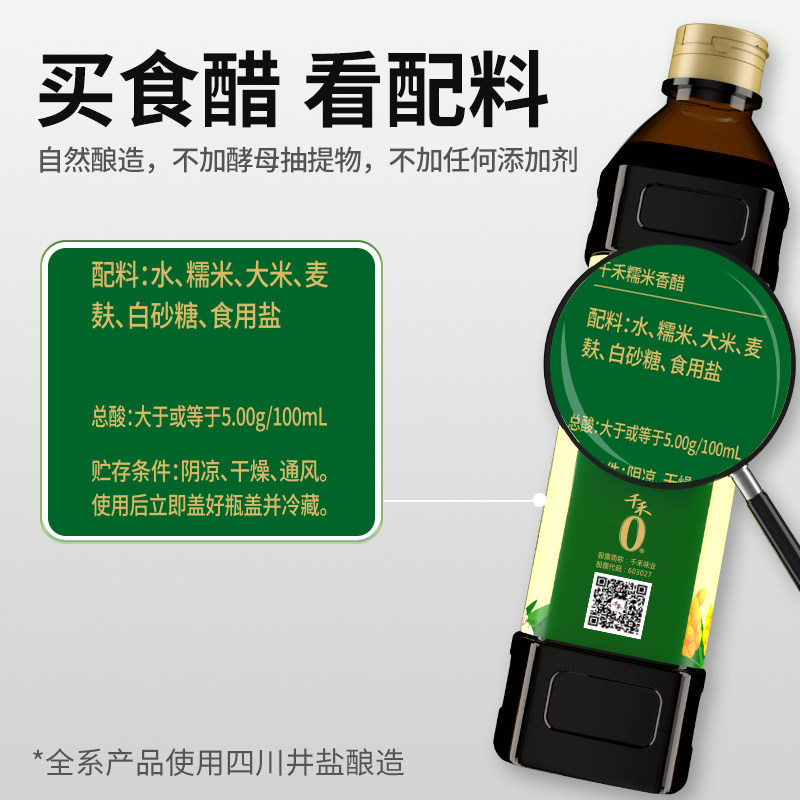 千禾零添加糯米香醋1L纯粮酿造食醋凉拌醋陈醋家用特醋饺子醋甜酸