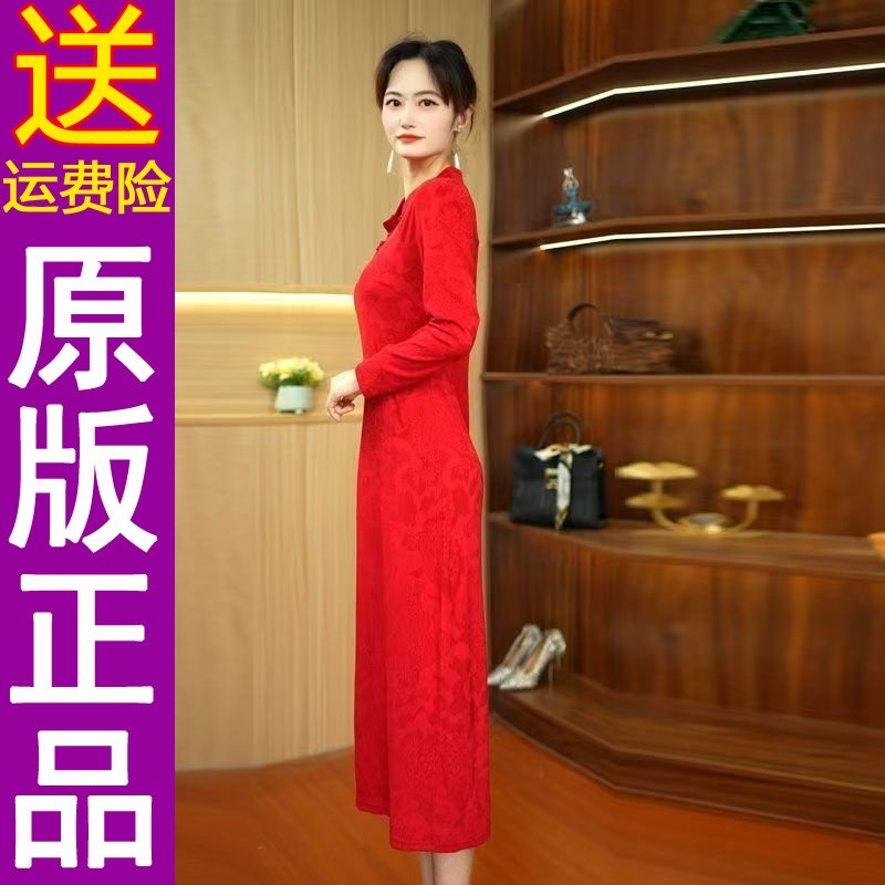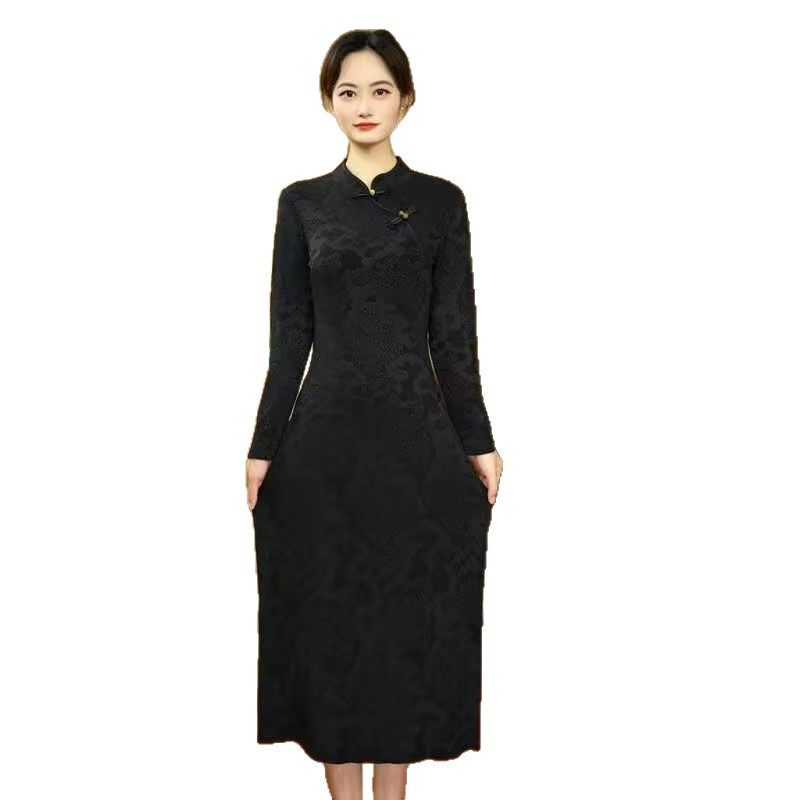 原版正品春秋新款国风中式长袖连衣裙2025旗袍礼服显瘦中长款裙子
