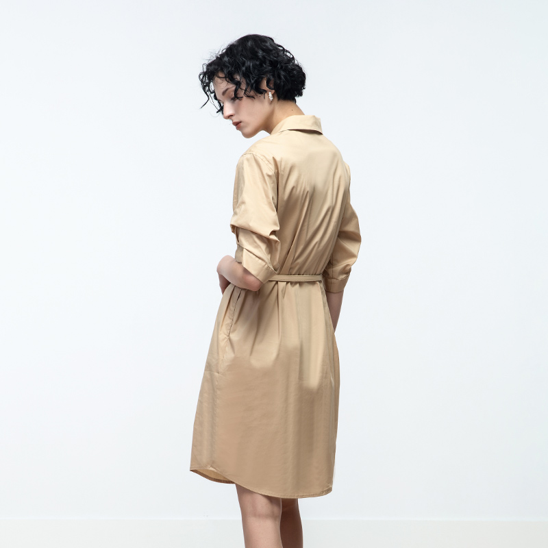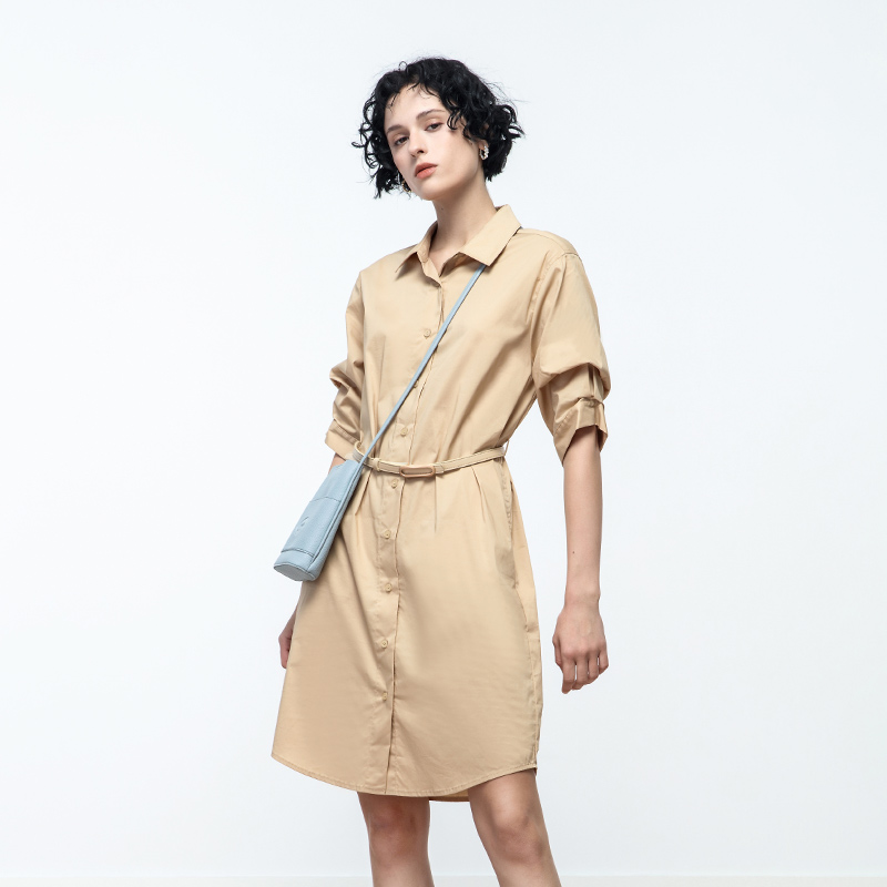 Keywearcloud奇威夏季衬衫裙女薄款通勤单排扣时尚系带收腰连衣裙
