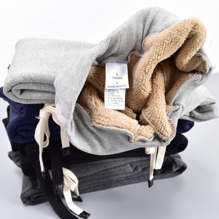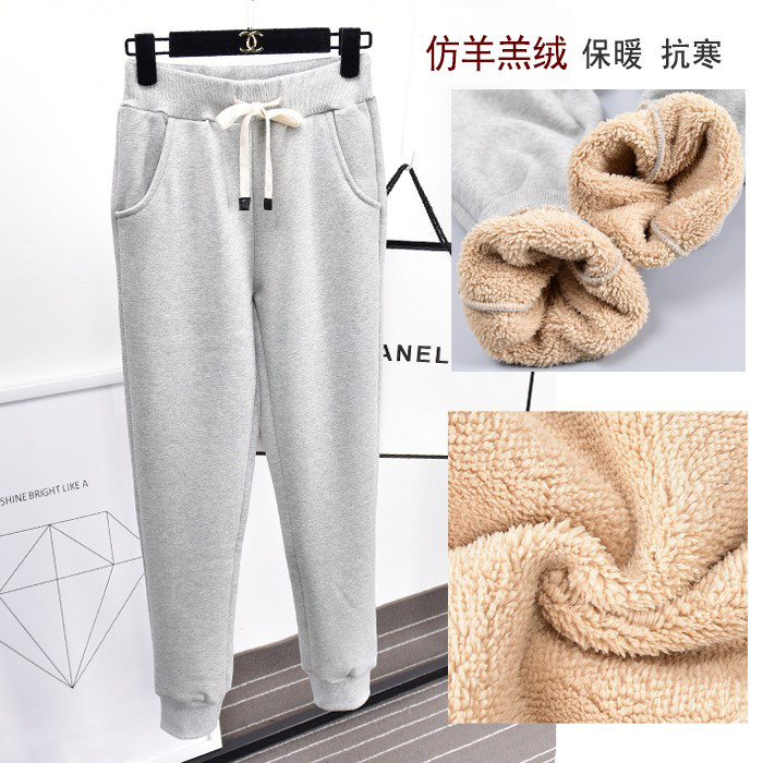 秋冬新款仿羊羔绒运动裤女加绒加厚小脚卫裤保暖休闲裤女大码长裤
