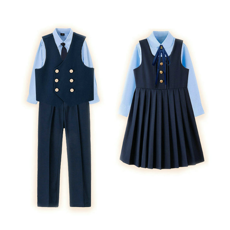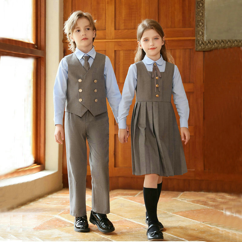 男女童小学生马甲套装校服春秋英伦班服无袖背心连衣裙幼儿演出服