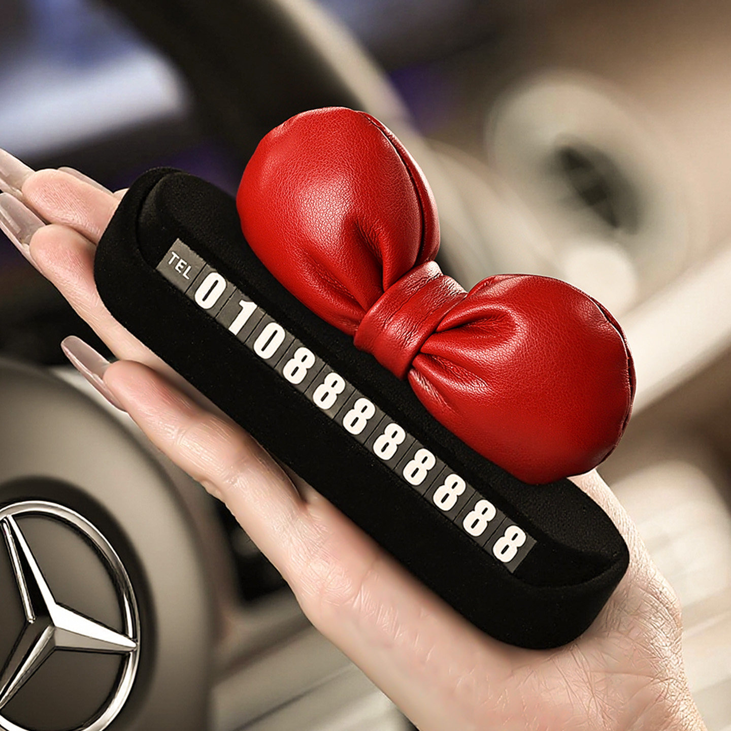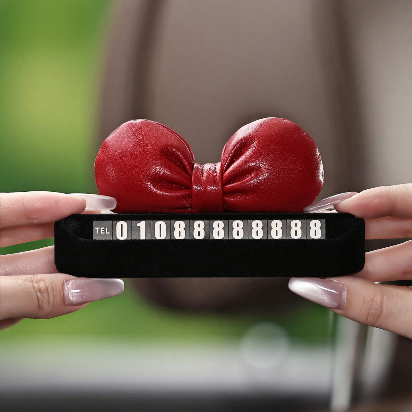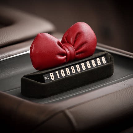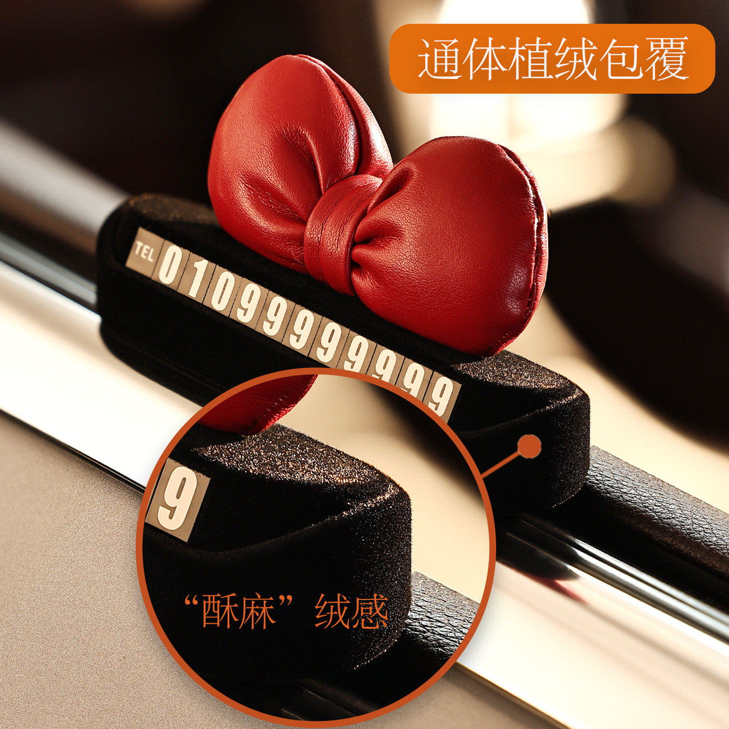 在逃小主 植绒版 汽车临时停车电话号码牌女蝴蝶结挪车牌车载装饰