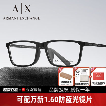 Armani阿玛尼眼镜框黑色方框男商务休闲全框眼镜架可配近视AX3027