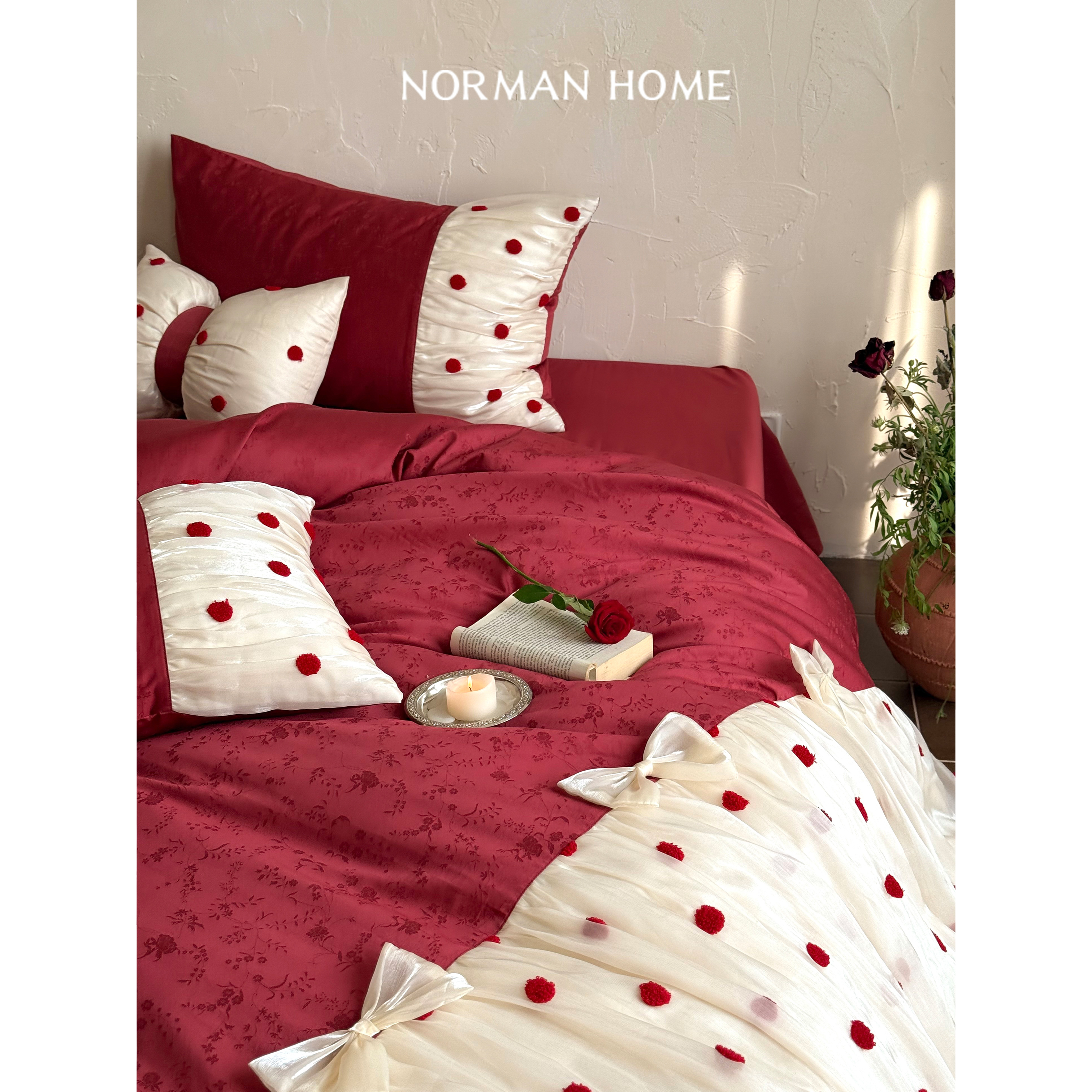 玫瑰夜之诗/法式新婚喜庆结婚四件套全棉纯棉长绒棉床上用品