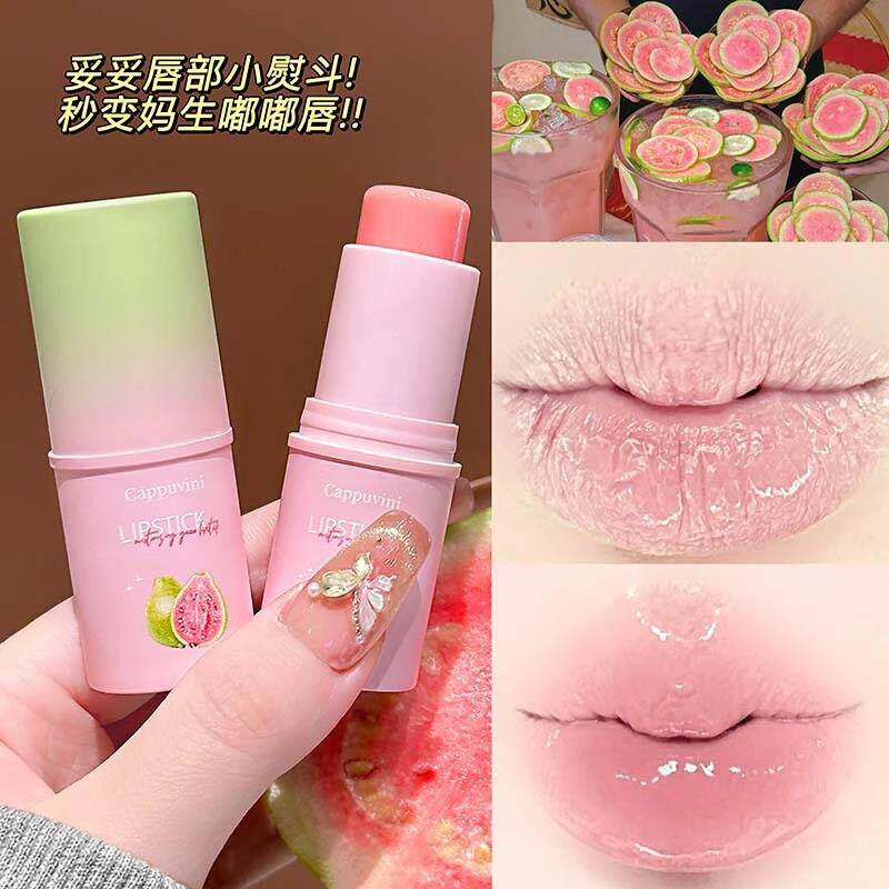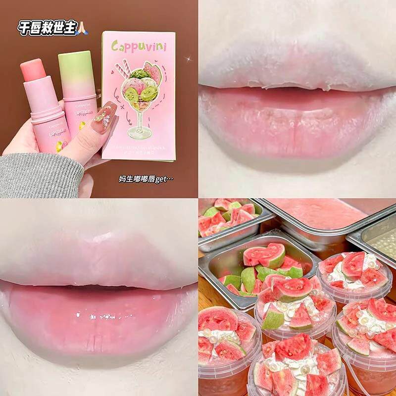 Cappuvini冰透水润芭乐唇膏保湿滋润防干裂去死皮口红打底润唇膏