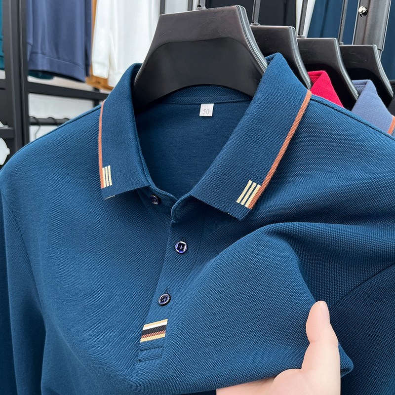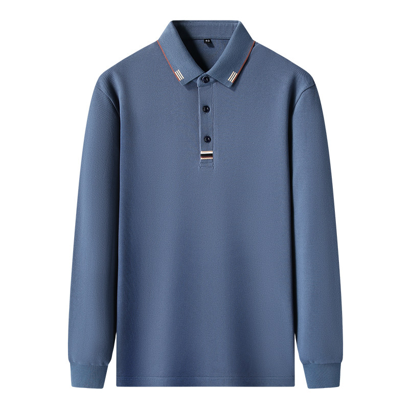 罗蒙春季新款纯棉男士长袖T恤宽松休闲全棉中年男款POLO衫上衣服