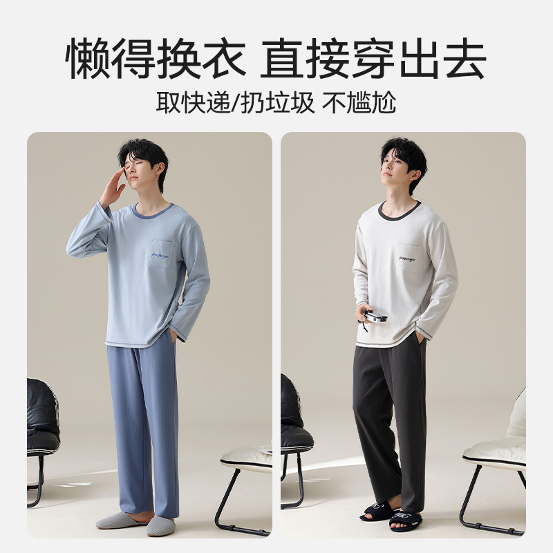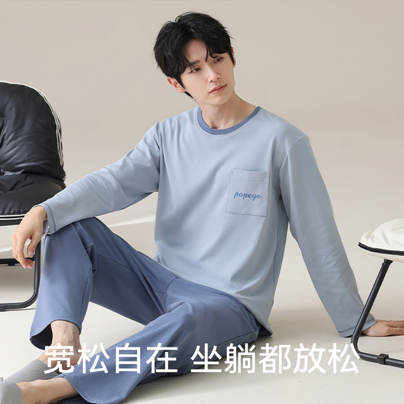 纯棉睡衣男士春秋季男款长袖青少年全棉男生四季款大码家居服套装