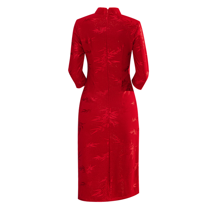 红色旗袍秋季年轻款小个子妈妈婚宴敬酒服7分长袖连衣裙喜庆国风