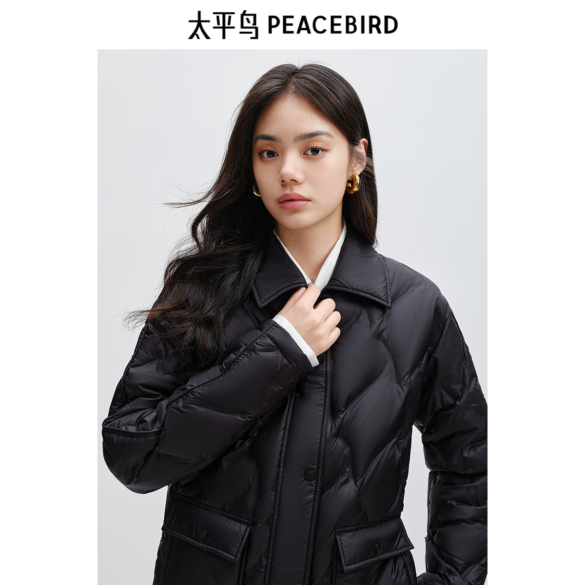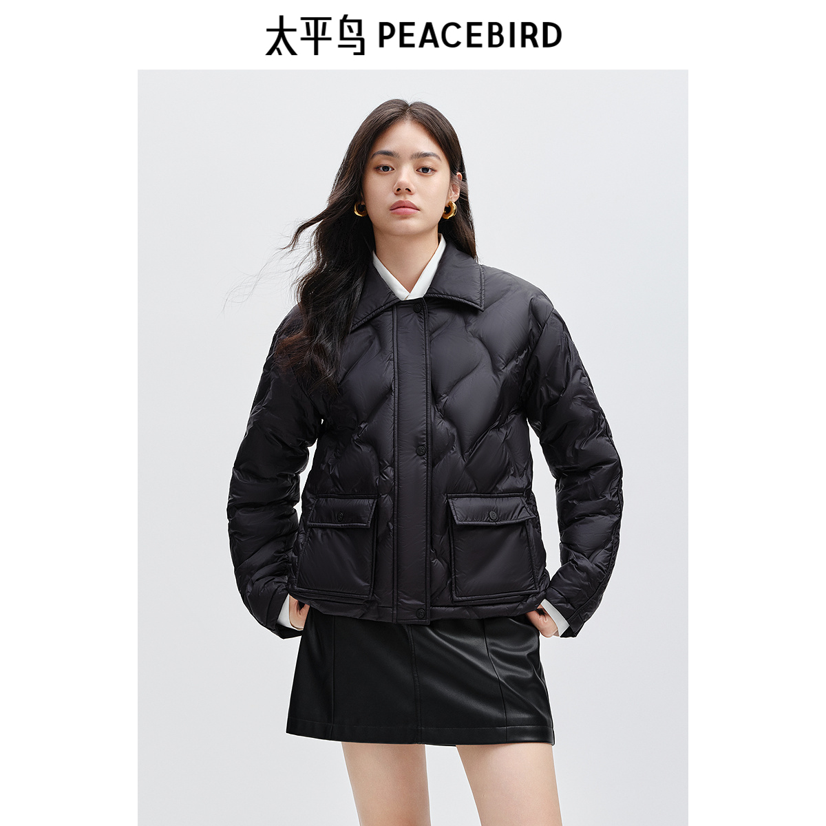 太平鸟女装压胶轻薄羽绒服新款多巴胺无胆衬衫羽绒休闲外套短款