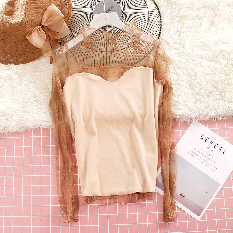 洋气2020秋内搭冬配毛衣加绒加厚雪纺衫白色内衬蕾丝打底衫女网纱