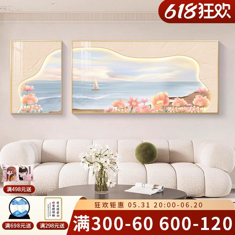 奶油风花海客厅装饰画p北欧高级感沙发背景墙壁画简约现代组合挂