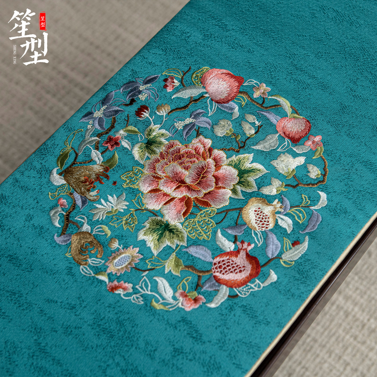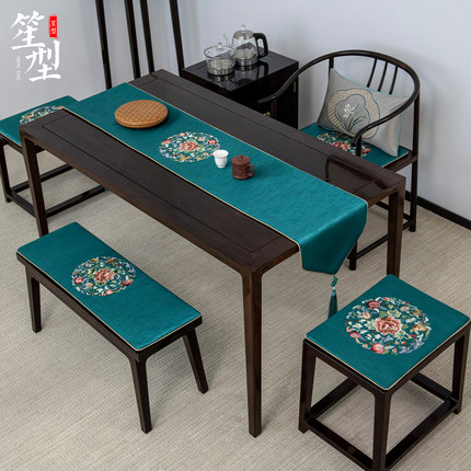 新中式椅垫古典绣花座垫红木沙发坐垫长凳垫腰枕桌旗茶椅餐椅垫子
