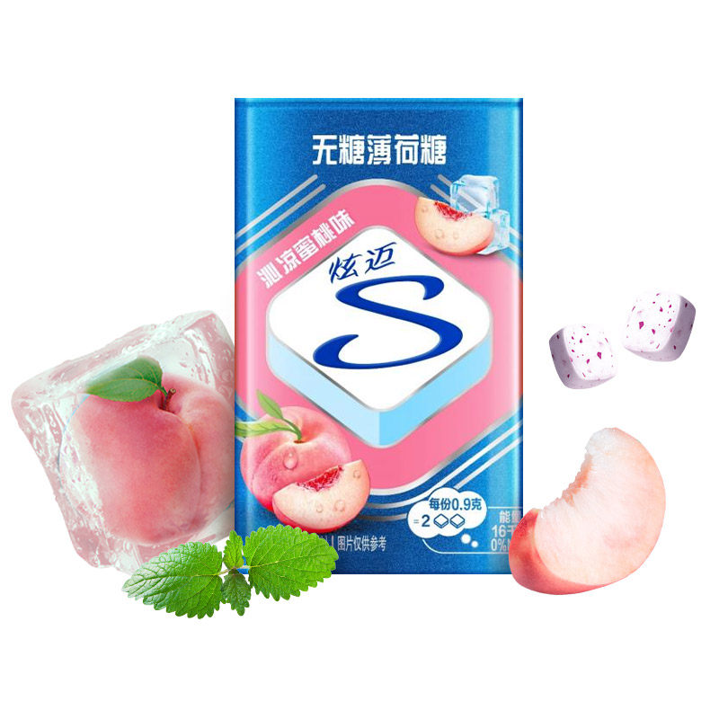 炫迈水蜜桃味无糖薄荷糖果铁盒装清新网红零食凑单