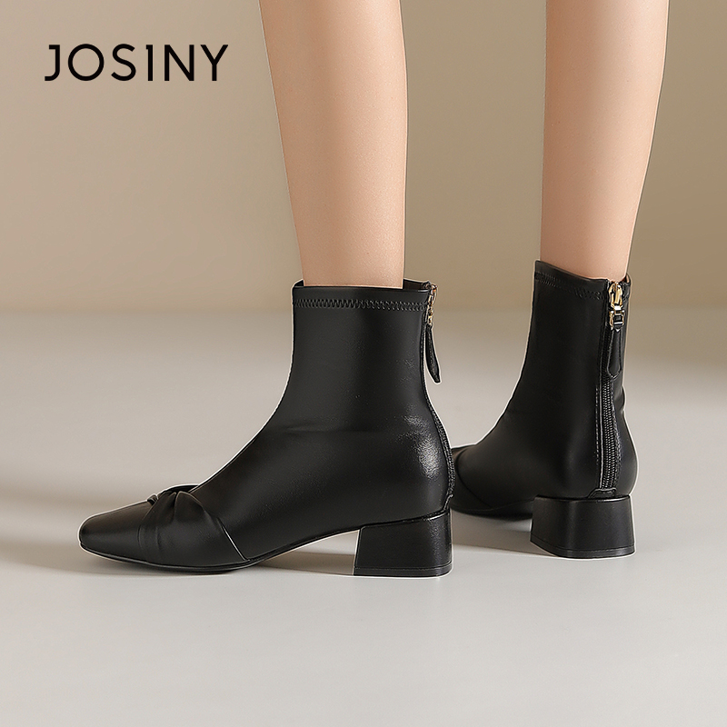 卓诗尼女靴2024冬季新款短筒高跟短靴女时装靴线下专柜商场同款