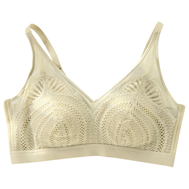 古妃新款蚕丝养护无钢圈内衣女薄杯无痕聚拢蕾丝收副乳文胸90501