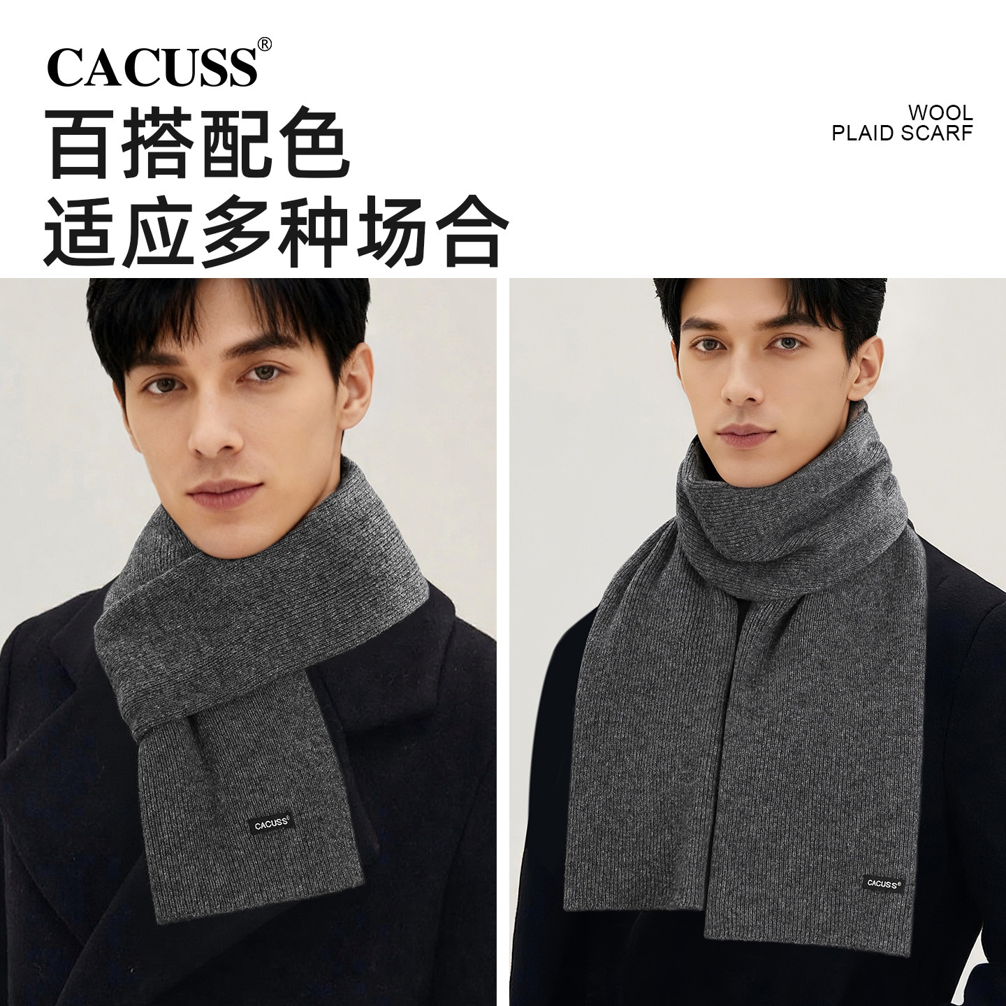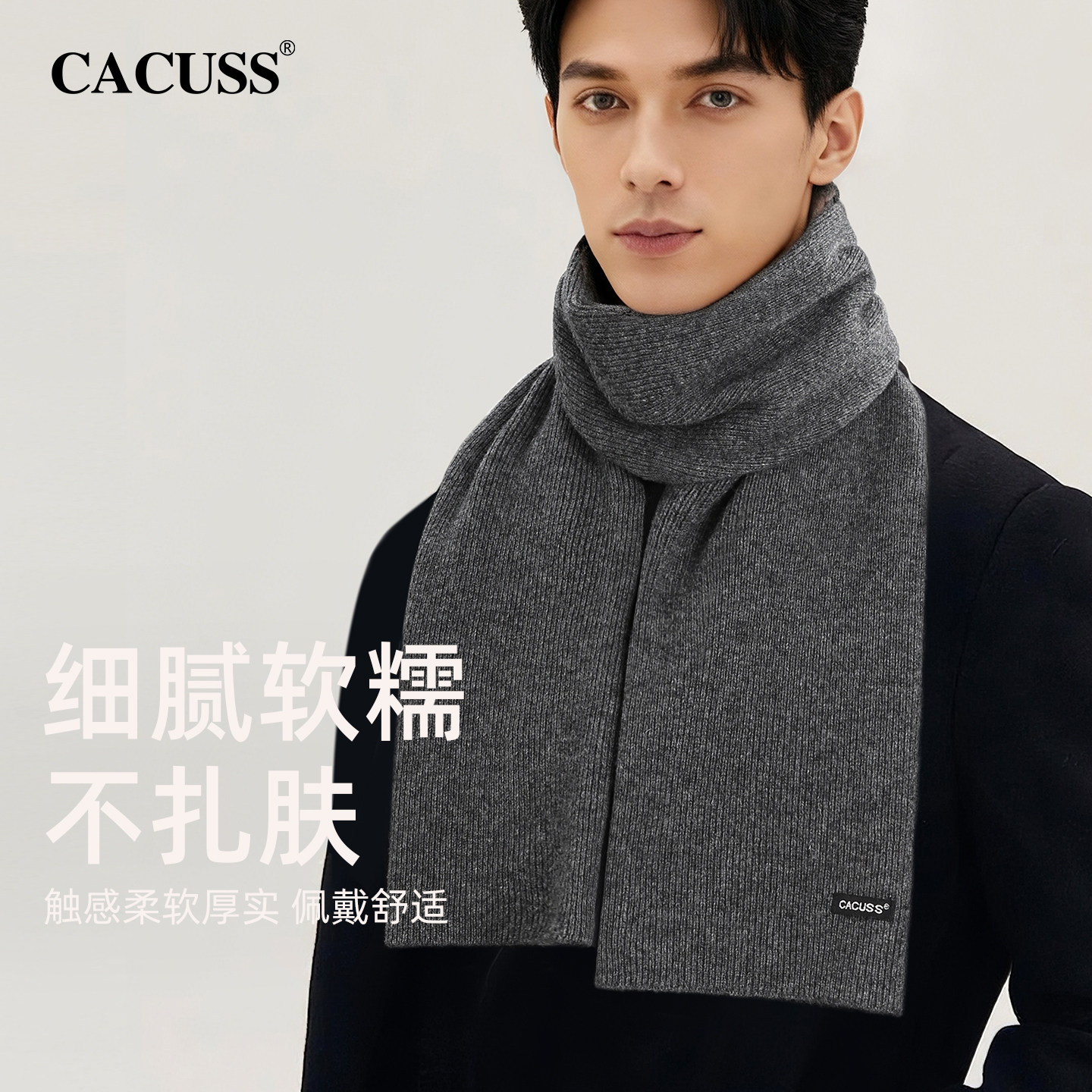 CACUSS纯羊毛针织围巾男冬季高档商务百搭保暖防寒围脖送男友礼物