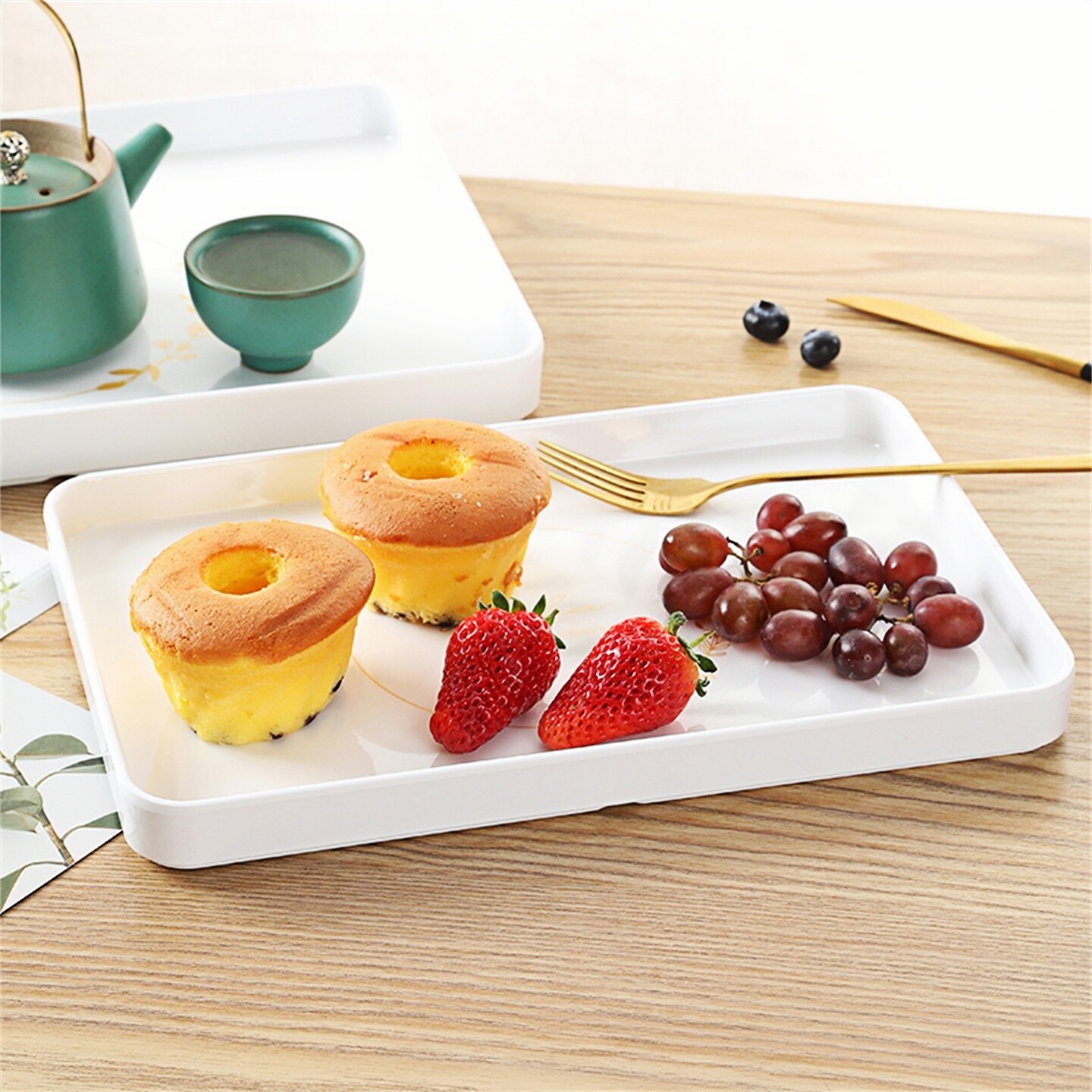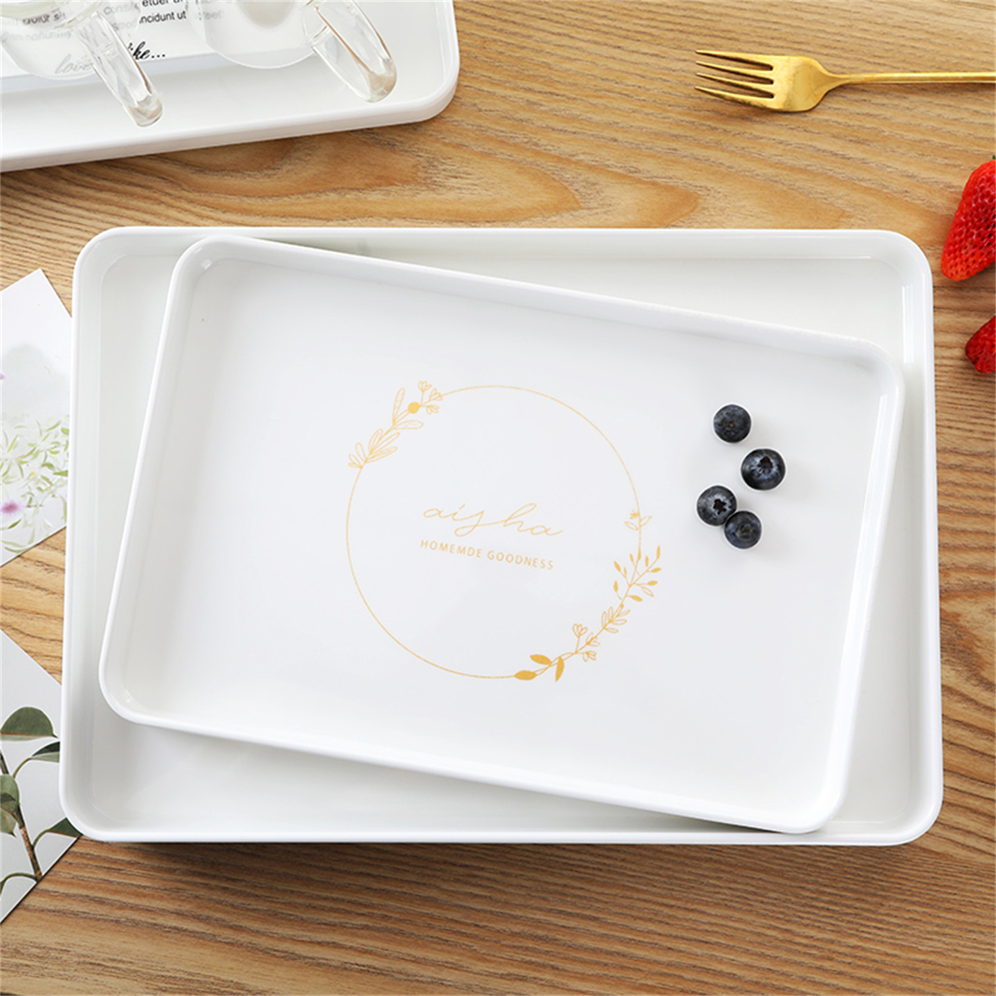 白色塑料托盘长方形茶盘家用高级感盘子轻奢水杯收纳盘密胺杯子盘