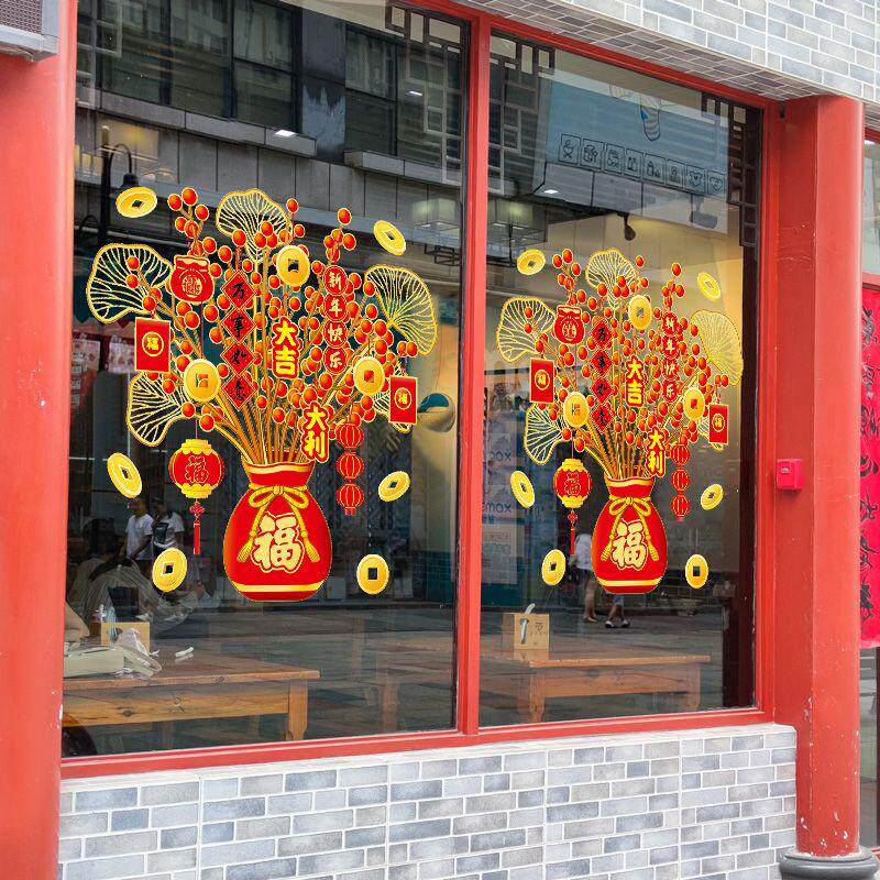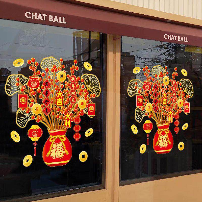 2025新年过年装饰发财树窗花贴福字门贴玻璃贴纸蛇年春节静电贴画