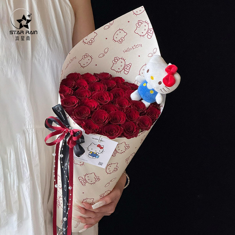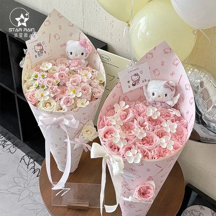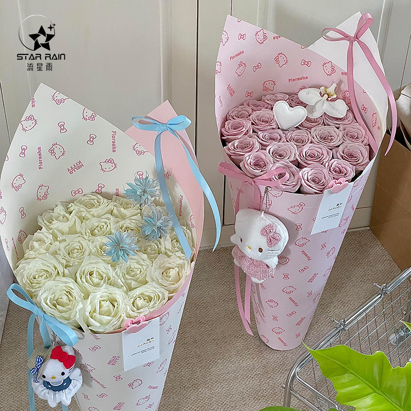 流星雨Hellokitty冰淇淋花束筒包装纸KT猫鲜花包花纸花艺材料资材
