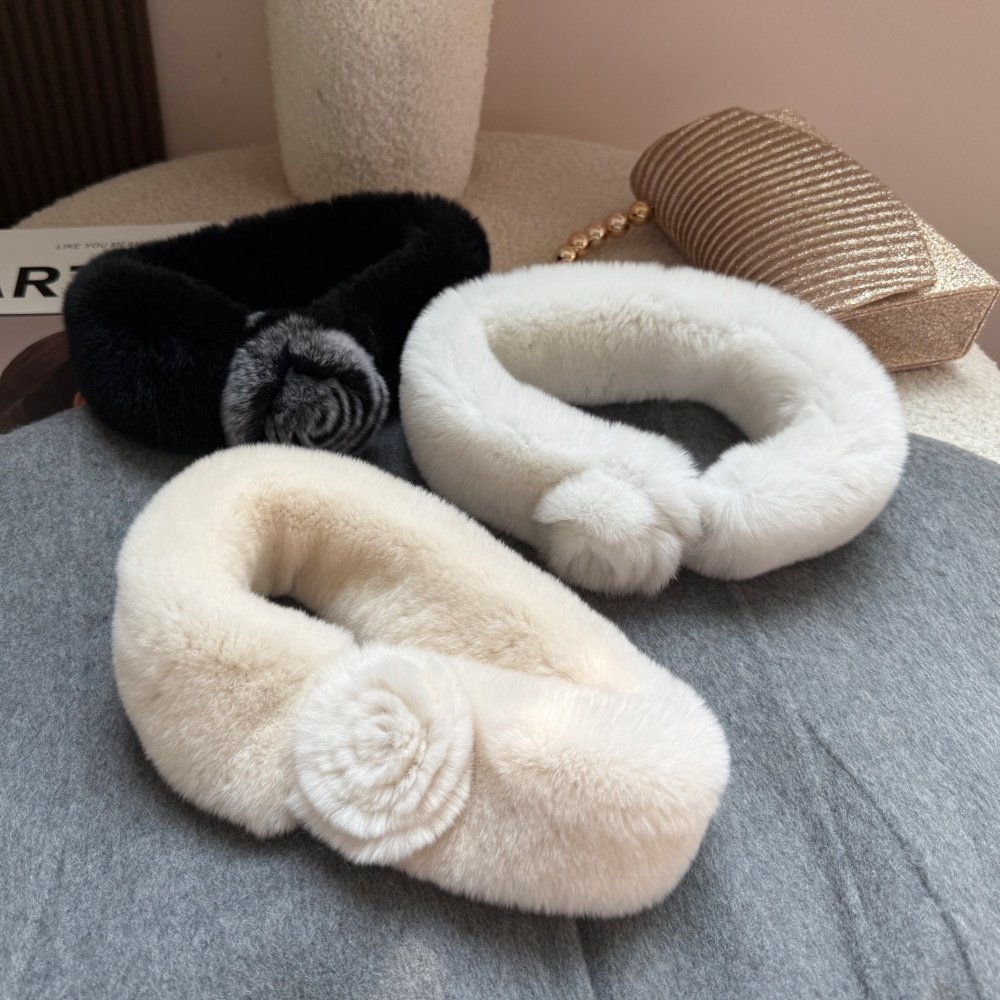新品秋冬山茶花獭兔毛围巾小版磁扣皮草围脖真毛毛保暖双面毛脖套