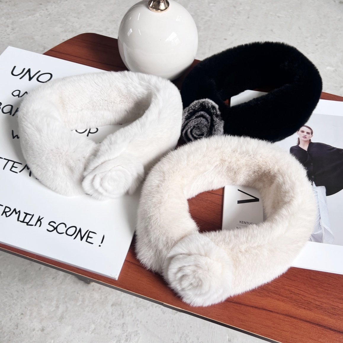 山茶花獭兔毛围巾小版磁扣