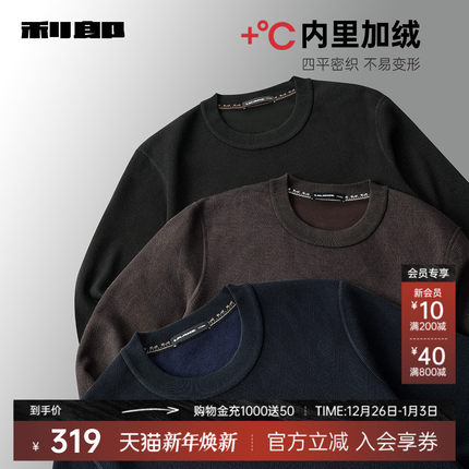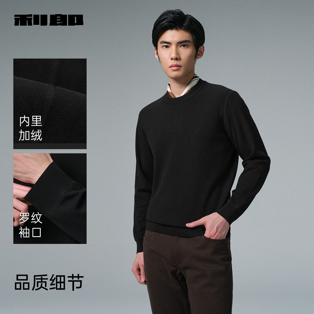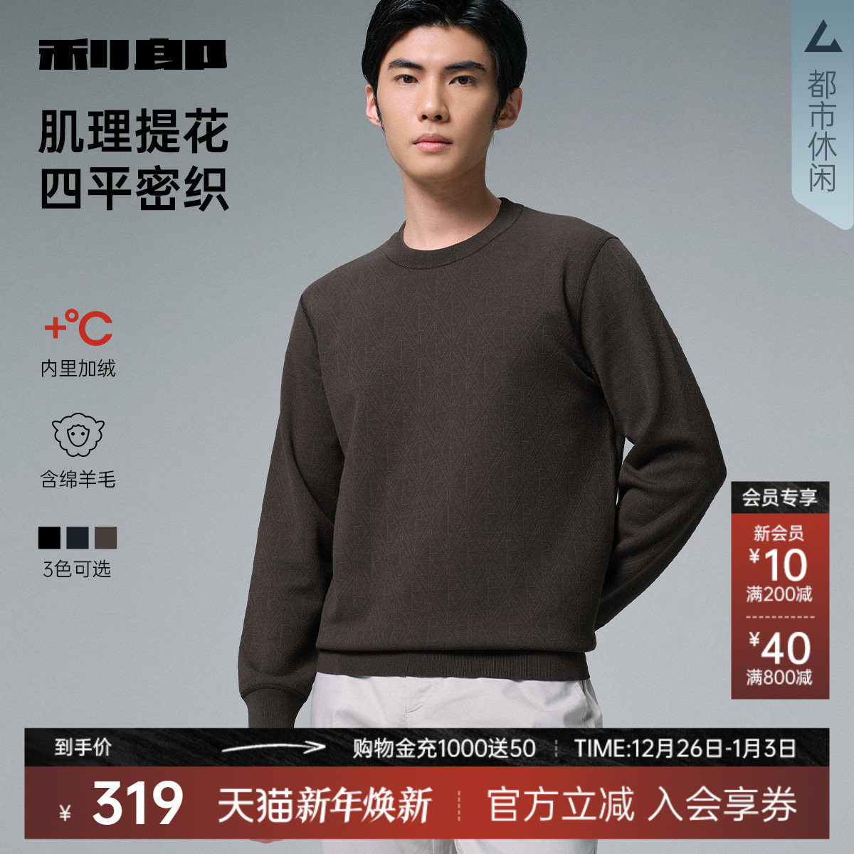 【含绵羊毛/内里加绒】利郎官方 毛衫男士提花圆领2025冬保暖毛衣